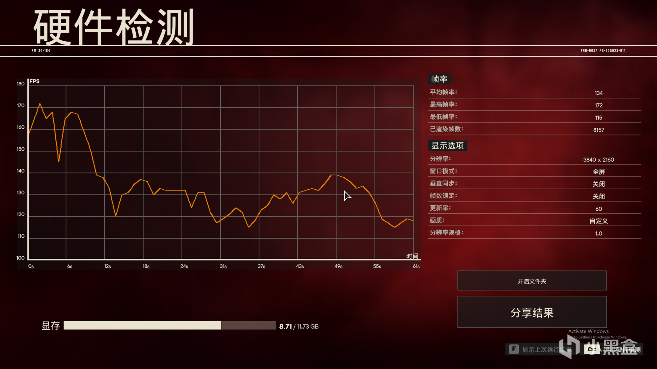 「FARCRY6」游戏内benchmark测试4K 分辨率下平均帧134。