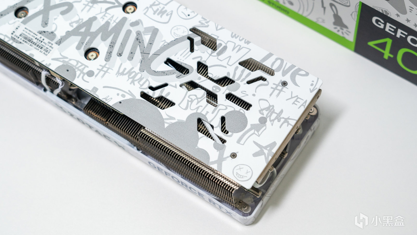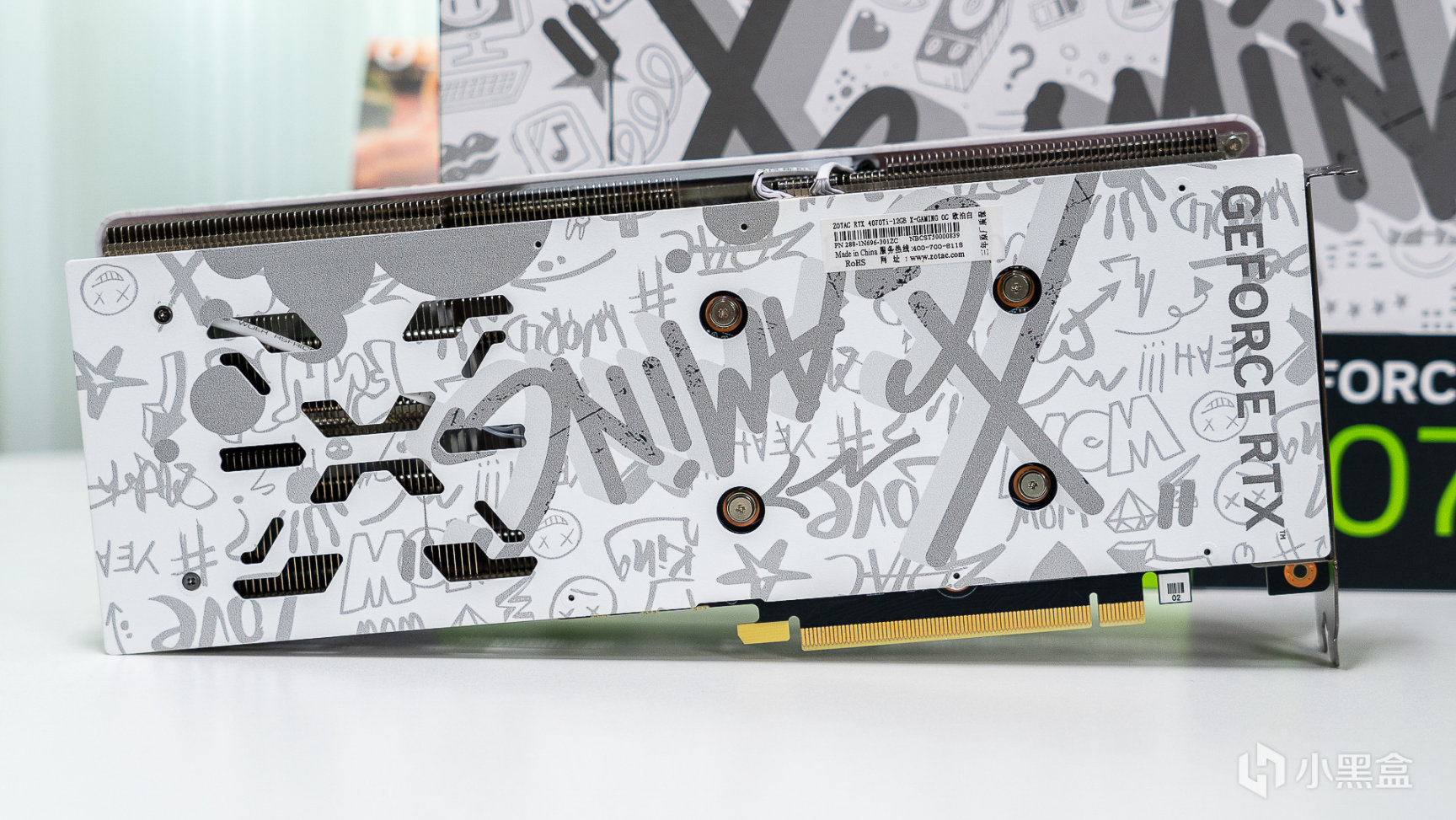 索泰RTX 4070Ti 12G X-GAMING 欧泊白与正面一样,保持了大量涂鸦元素设计。
