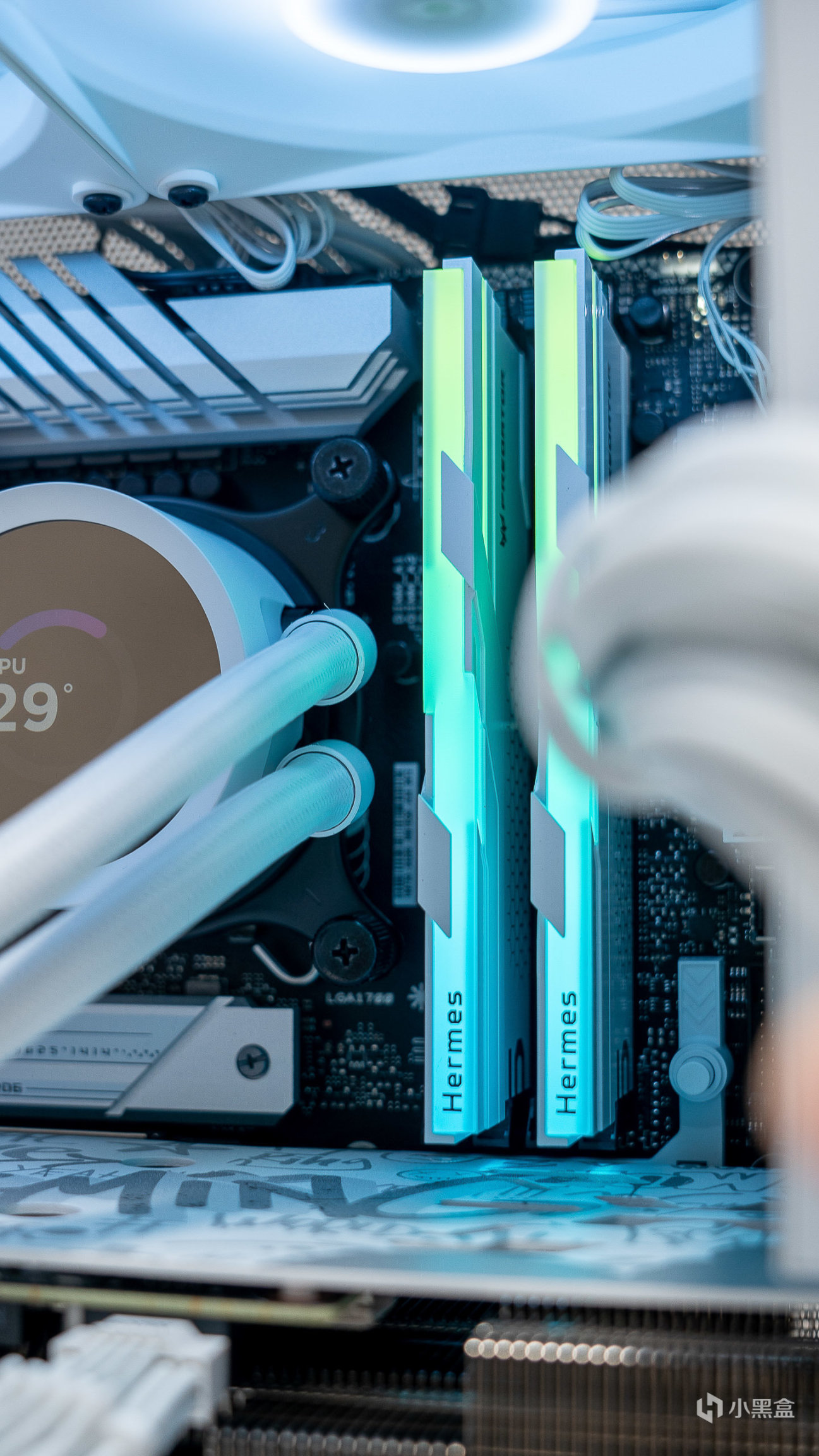 内存也是搭配了白色系的宏碁的掠夺者 Hermes冰刃系列白色版,支持ARGB 幻彩灯光以及各家的神光同步效果。而且特挑的ADIE 颗粒超频真的很容易实现。