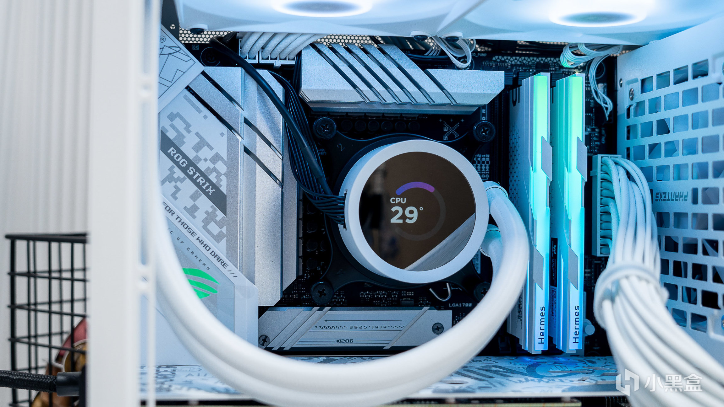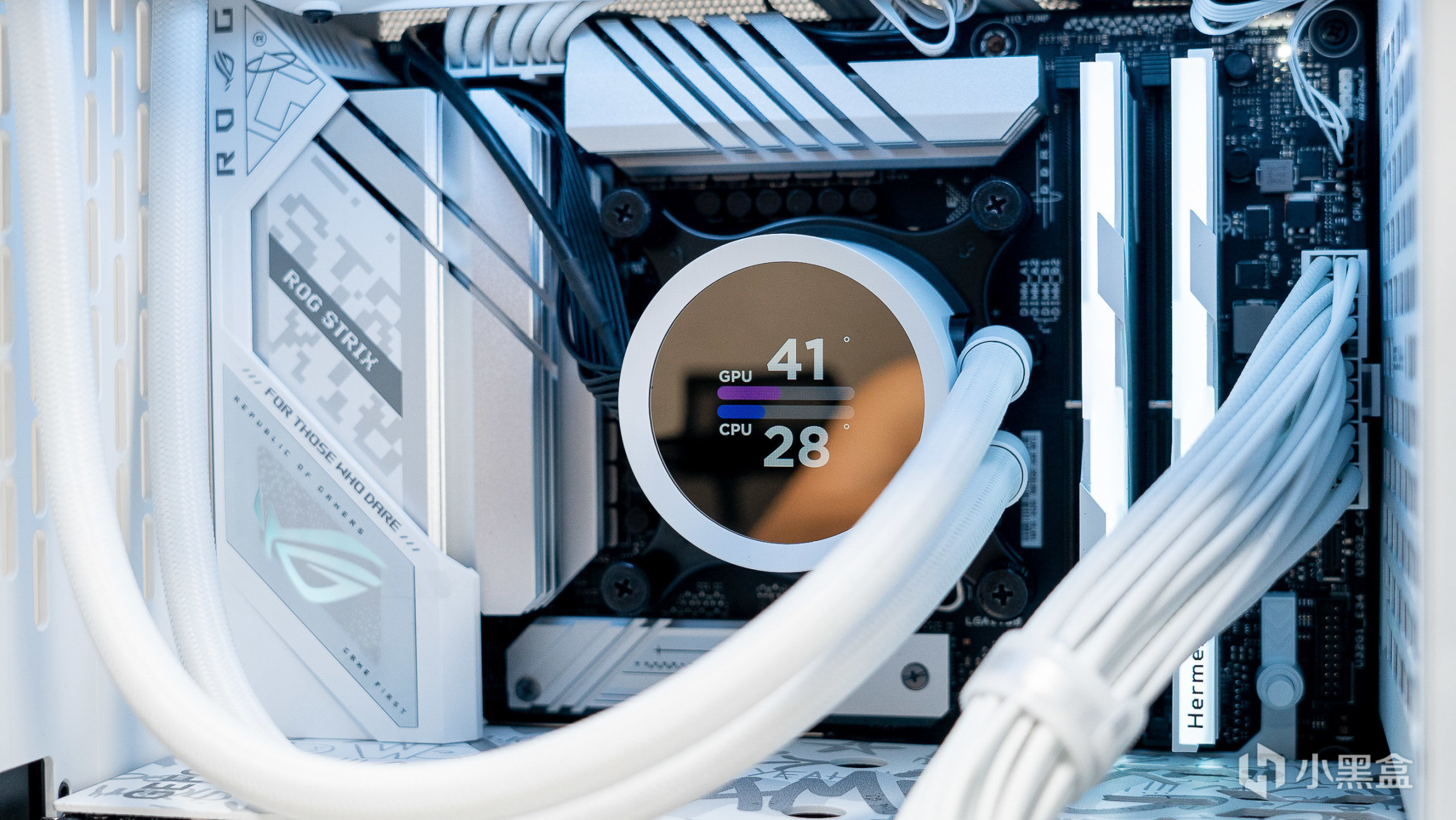 配置上选择了华硕 ROG STRIX B760-G Gaming D5 小吹雪主板,这款千元价位的二次元风格元素满满的MATX主板。对于想搭建一台白色主机的玩家会是一款性价比很高的选择,散热方面我选择了白色的NZXT 的新款海妖,相比之前在冷头和风扇上都有了不小的升级。颜值上相比前代LED 屏幕也升级到了LCD 屏幕,用户可以自定义显示内容。