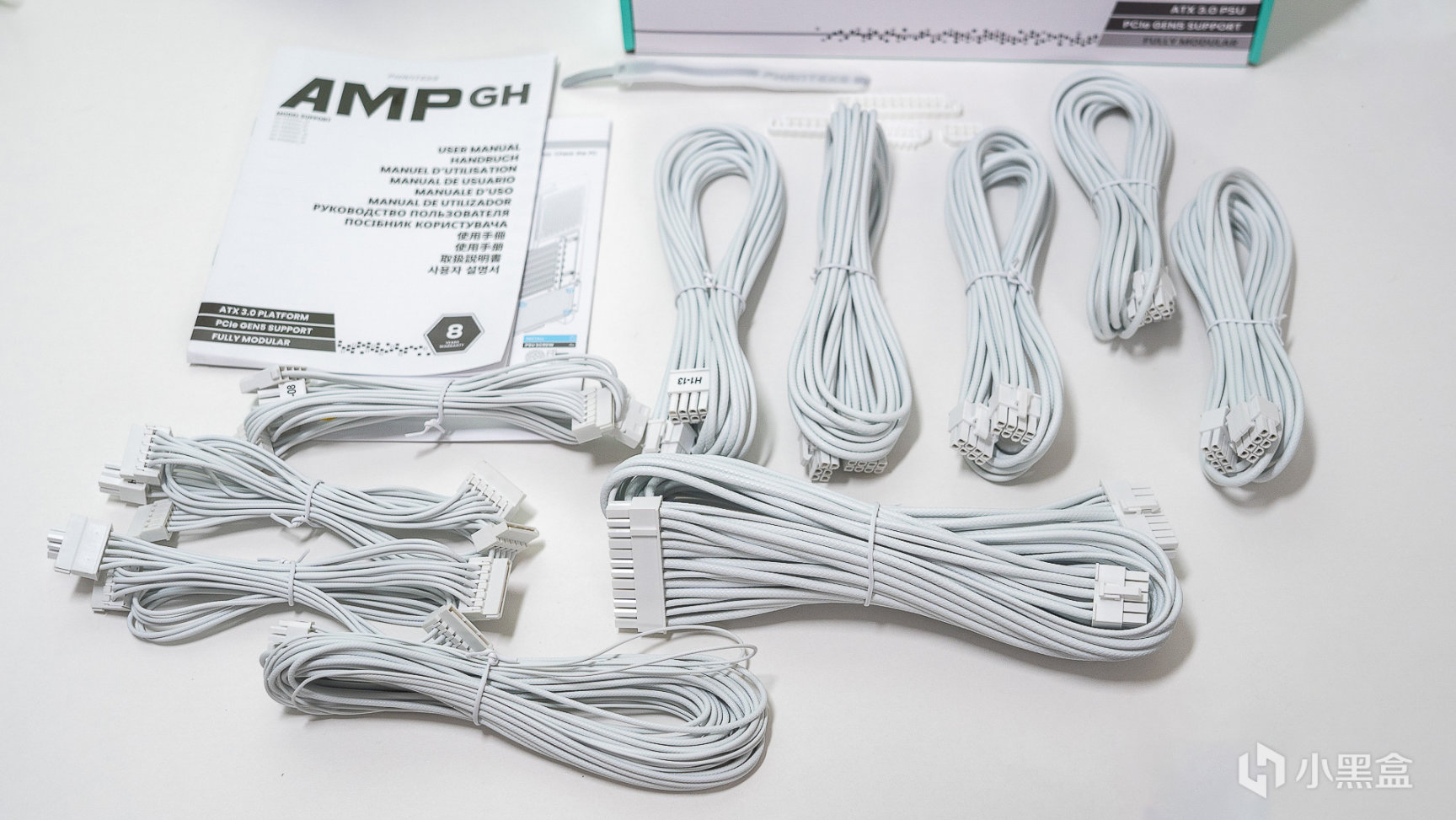 电源方面我选择了追风者最新发布的AMP GH 850 白色电源,这款电源除了在原先的基础生支持ATX 3.0 规格,原生12V HPWR 接口,单线材可以实现450W 的最大输出功率。而且它吸引我买单的更是它在线材方面的升级,自带蟒纹线+理线梳,原装线材质感要比定制线来的都更好。在线材质感、柔韧度上都非常不错。