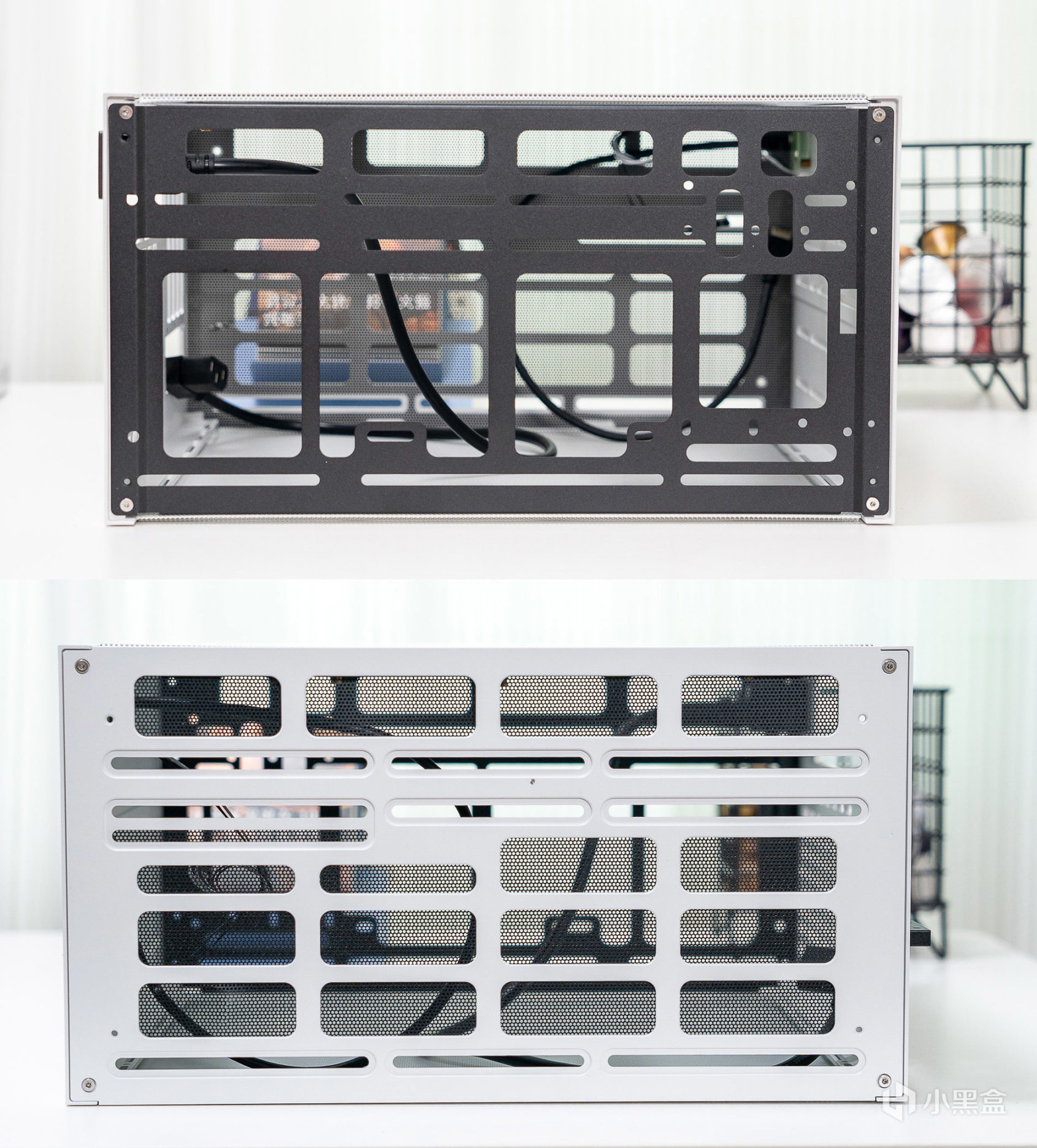 内部空间还是比较紧凑的,但是也能兼容一体式240/280 一体式水冷散热的安装。但是需要注意选择一体式水冷的话电源的尺寸问题。两侧的MESH 侧网采用抽拉式安装方式。