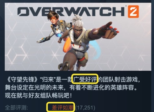 写这篇文章是为了给不明真相的盒友和三国杀玩家科普用的,接下来我会分几点说一下守望先锋差评如潮的原因,了解完事情的原委再去打差评也不迟