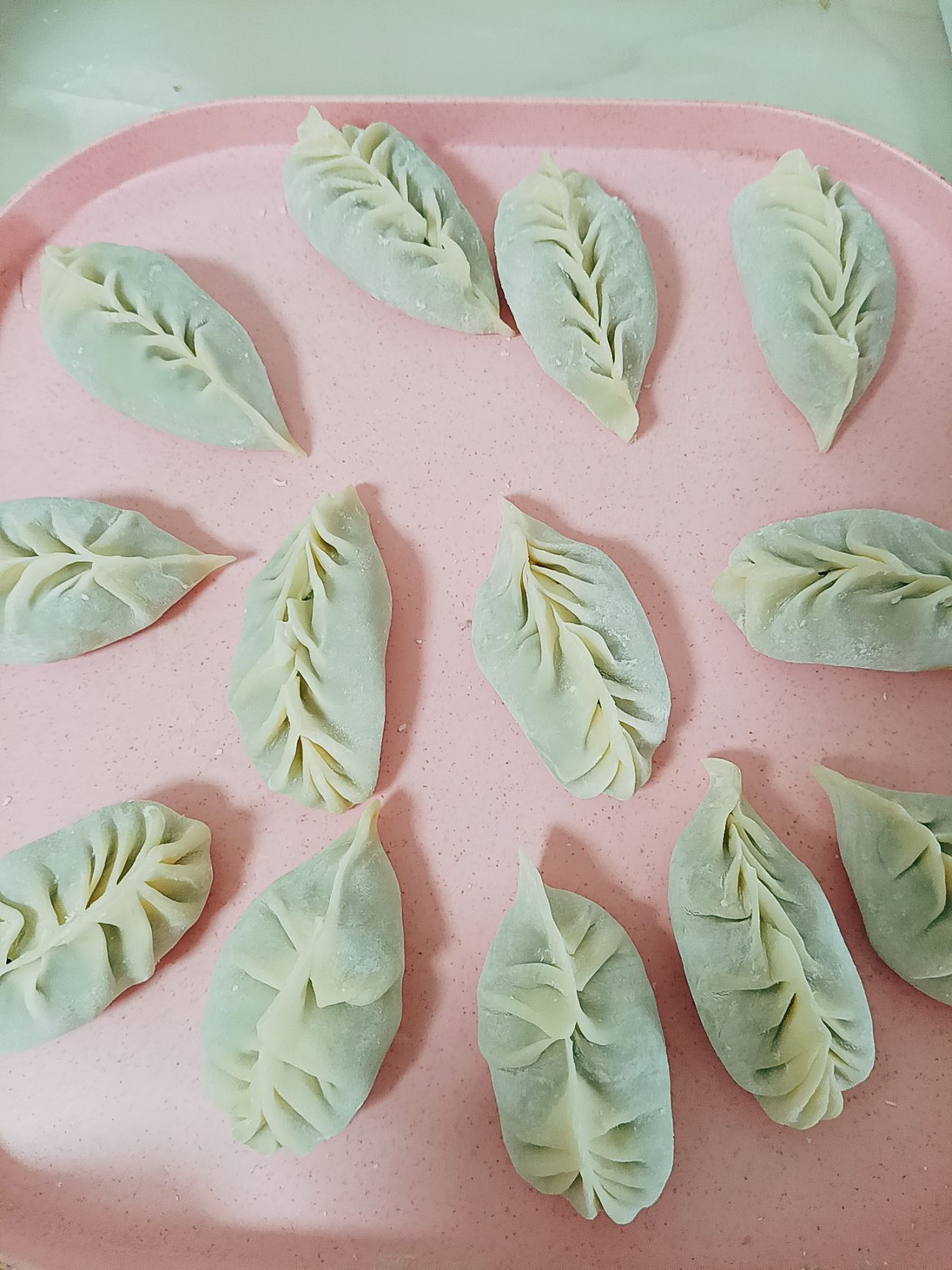 姐姐女儿包的,这个做蒸饺吃。水开,没有碟子,就蒸笼上,刷点油,上锅蒸10-15分钟左右。