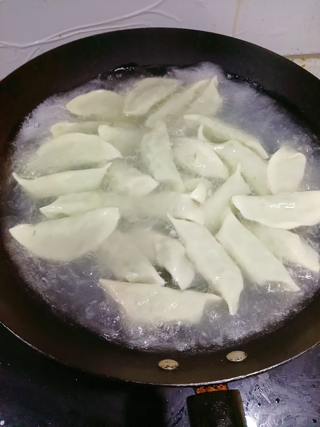 水开放入饺子🥟,水再次开,放凉水,水再开就可以捞出来。【冰冻后,就要放2次凉水】