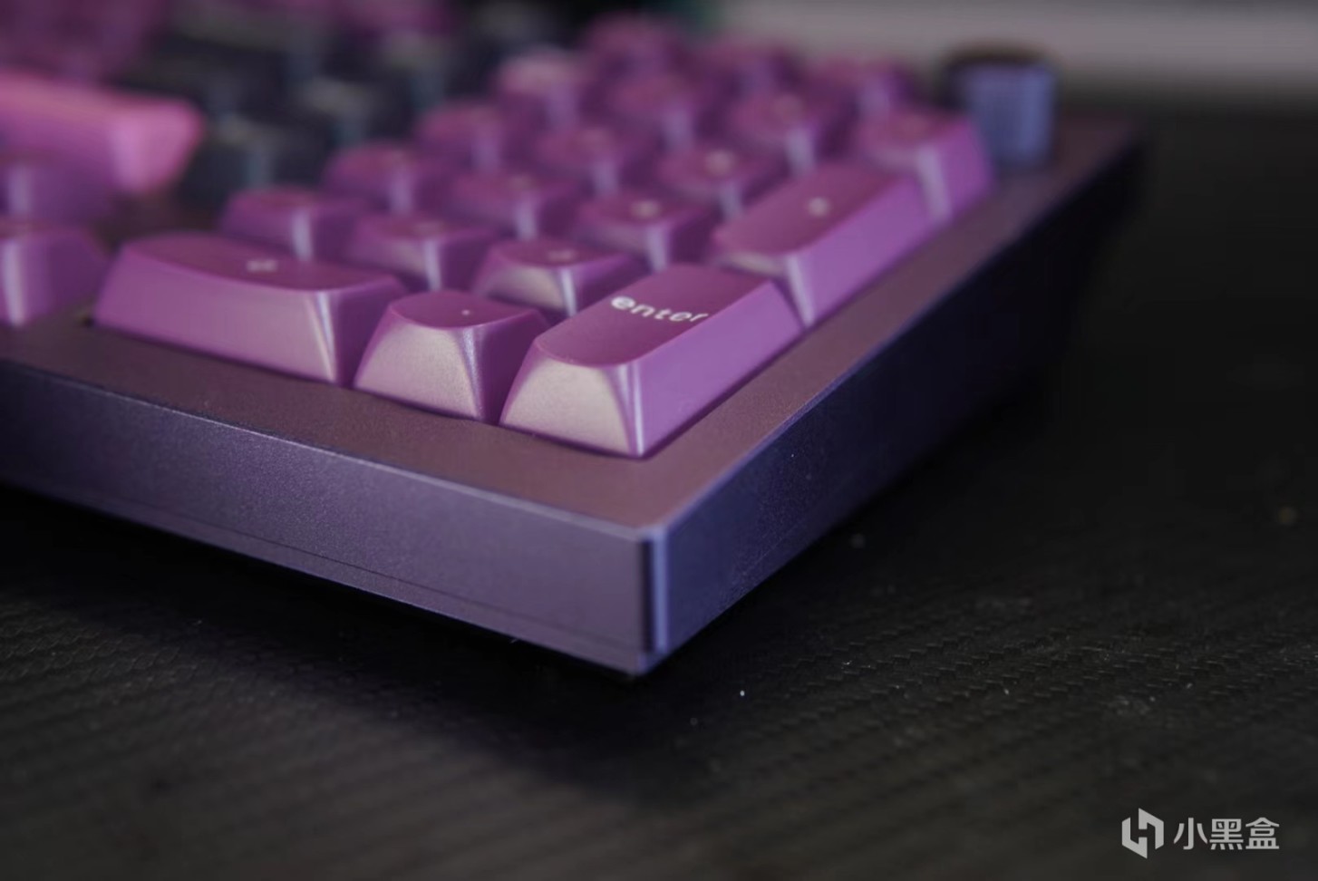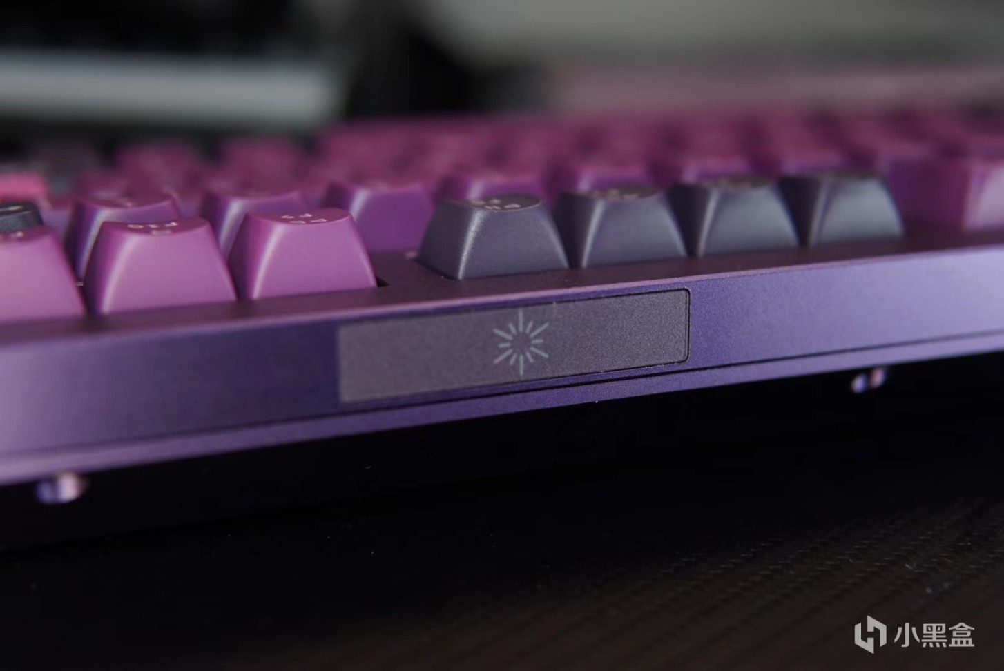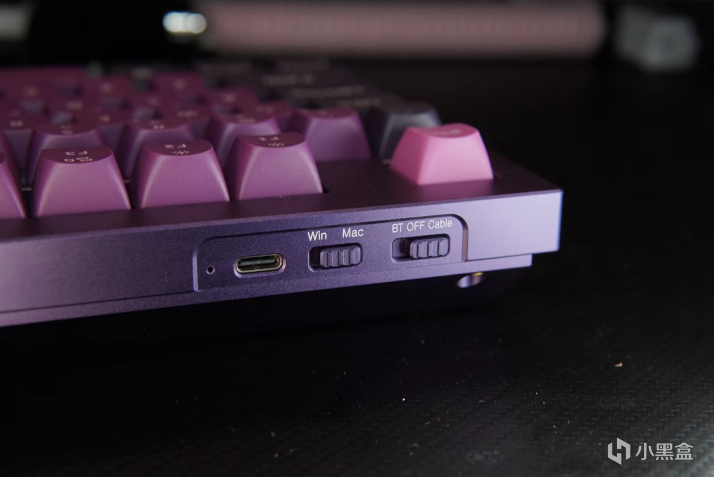 键盘因为本身是一个双模的,还是一个铝坨坨,为了不影响信号的传输,所以在键盘边框中间位置做成了塑料的。并且内部做了一个天线作为信号的发射端,这个设计确实很不错,能有效的保证键盘信号的传输。