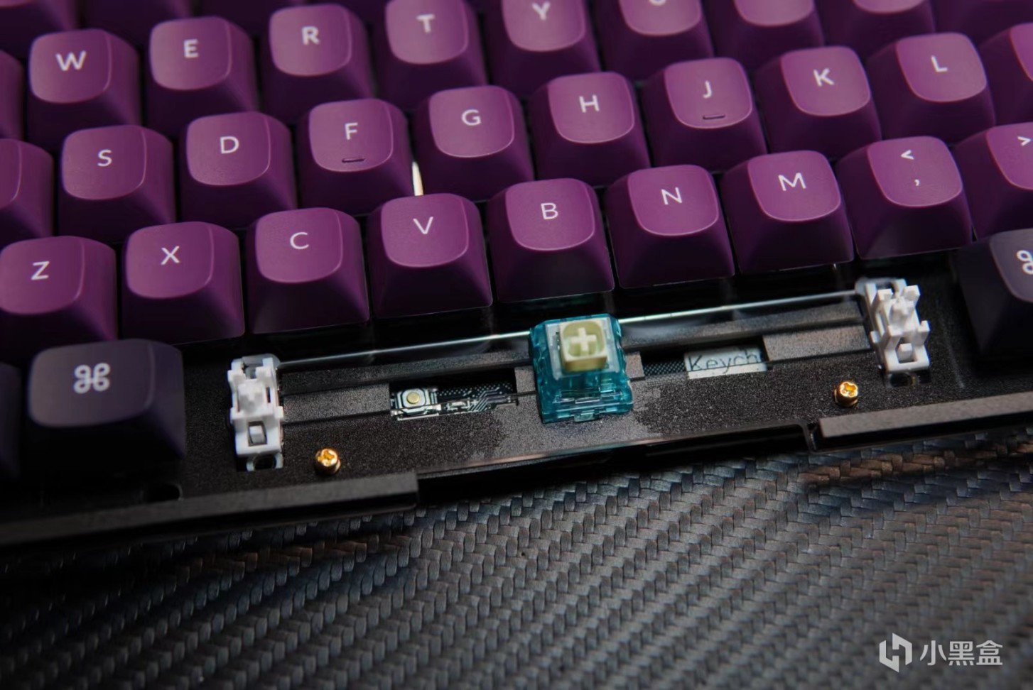 对!你没看错,这里keychron终于终于终于去掉了他该死的钢定,直接就换上了高透的pc定位板,这里keychron你很不错哦。还记得你家键盘是一个gasket结构。