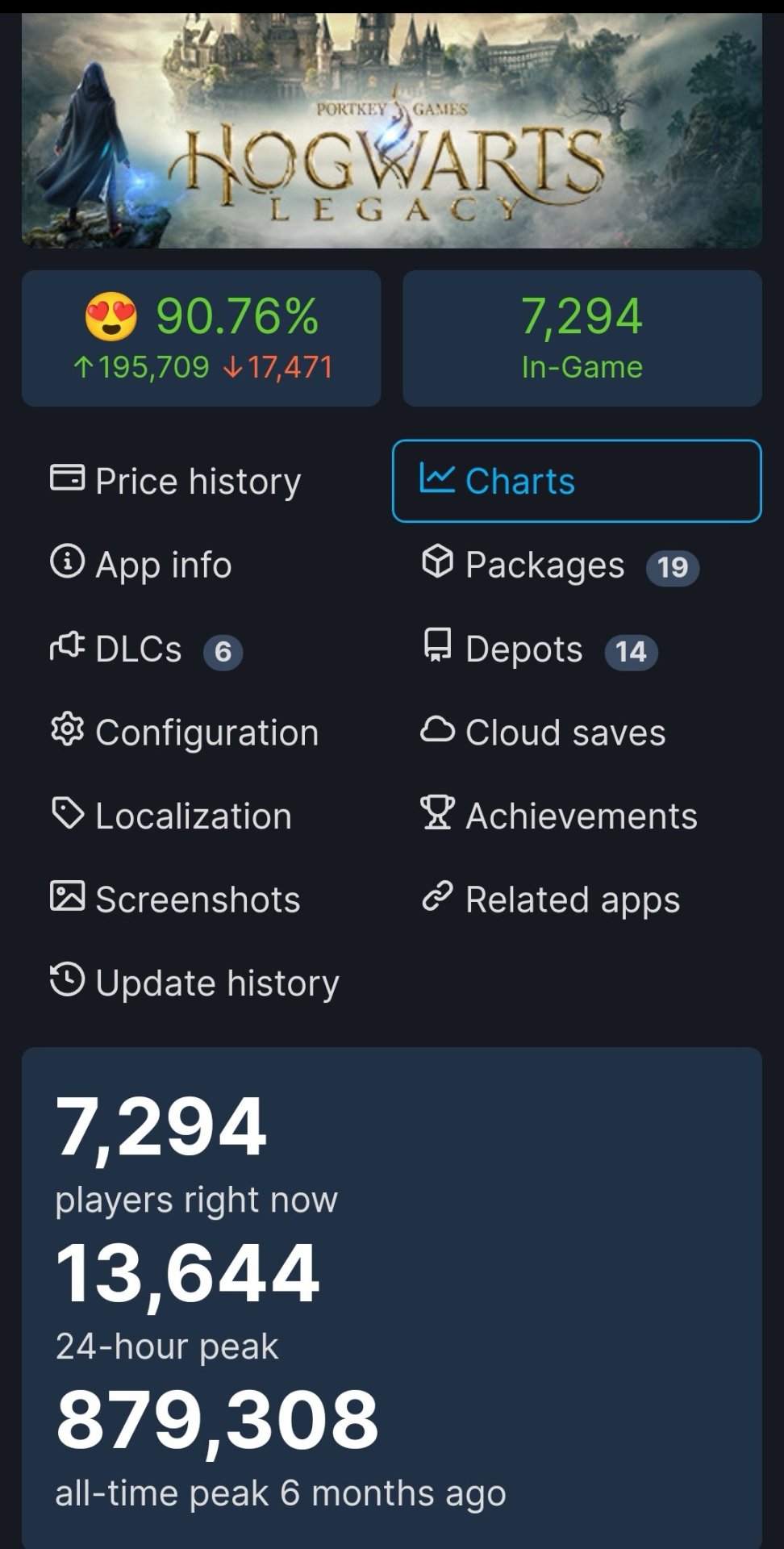 离霍格沃兹最高在线人数仅差四万,是今年第二大在线最高人数的游戏