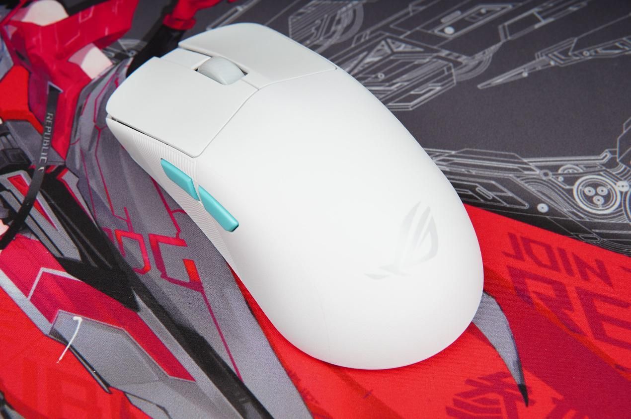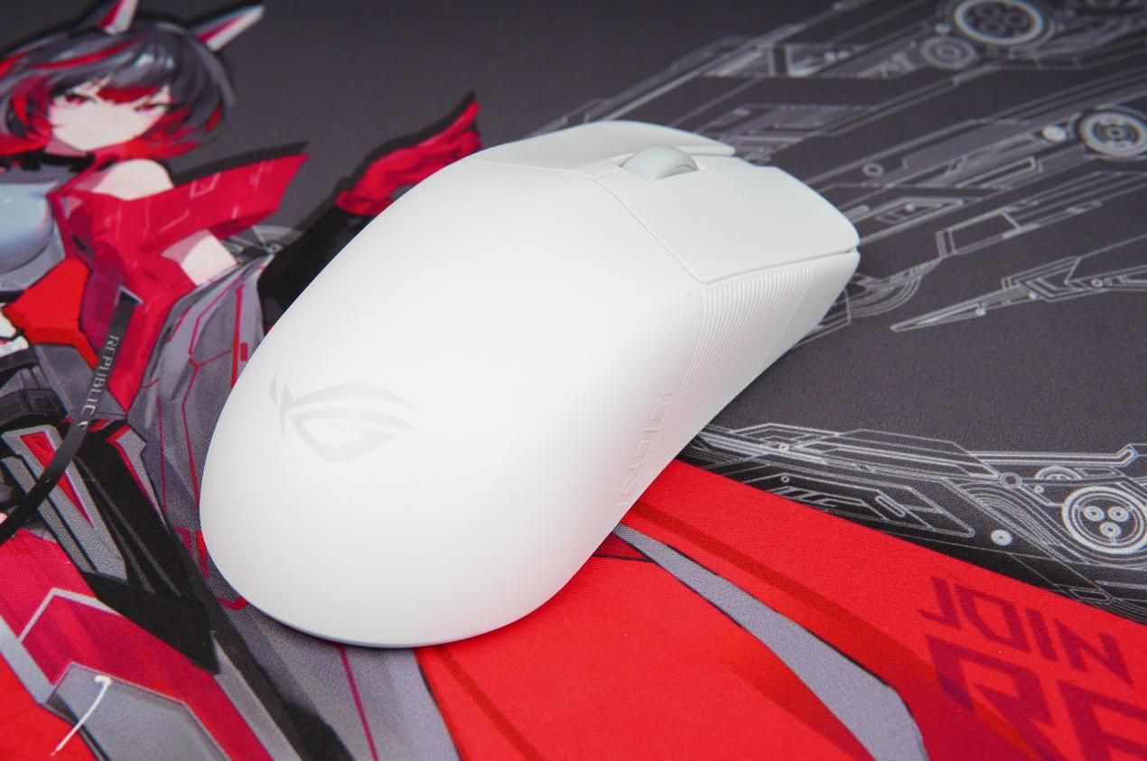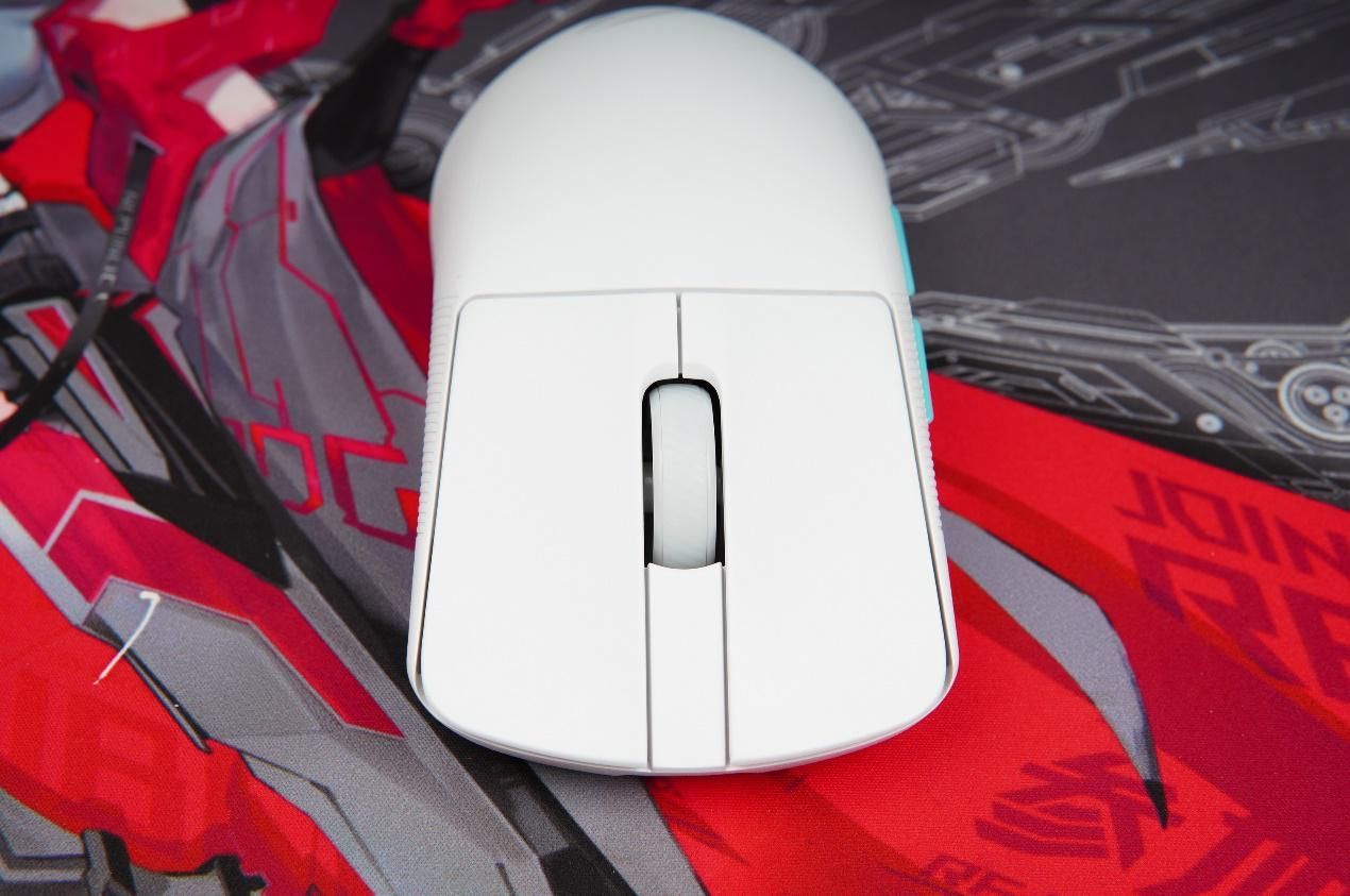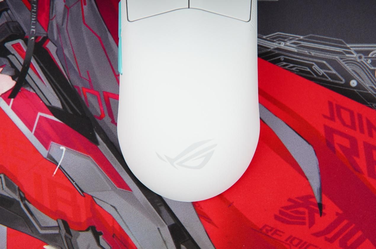ROG龙鳞ACE鼠标整体外形为对称手型。鼠标整体尺寸为L127.5mm x W63.7mm x H39.6mm,属于中大型鼠标的范畴,抓握以及趴握均可,我个人则更喜欢趴握。虽说体积方面比较大,但是重量却仅仅只有54g,绝对的王炸重量,而且这个重量对于搭配这个体积拿在手上就感觉拿了一根羽毛一样,夸张点甚至是好像忘记自己拿着鼠标一样。我之前一直都在用110g左右的鼠标,在包装内拿出龙鳞ACE的时候直接惊叹到哇的一声,因为两者之间的重量差距非常大,在使用时候更是,顿时觉得旧鼠标是一块水泥了。