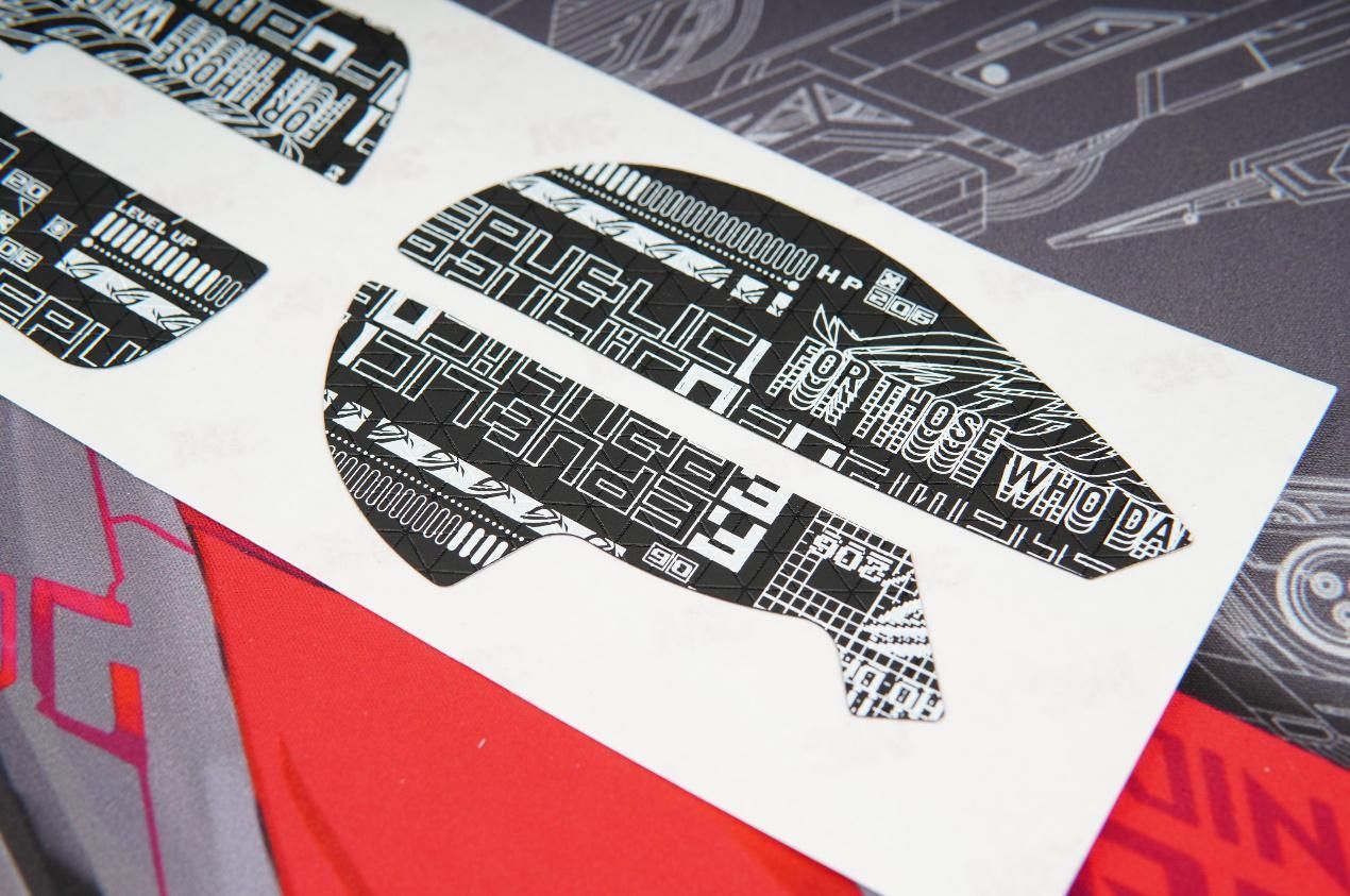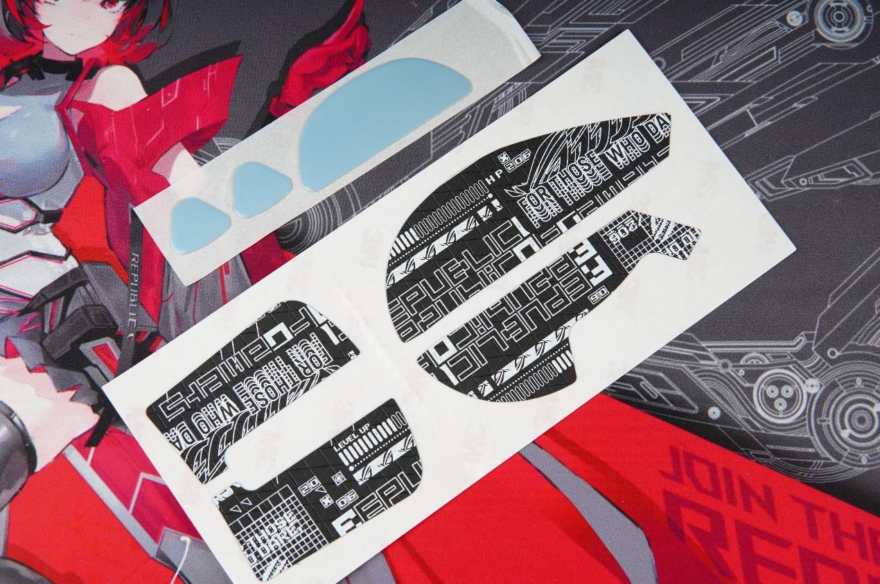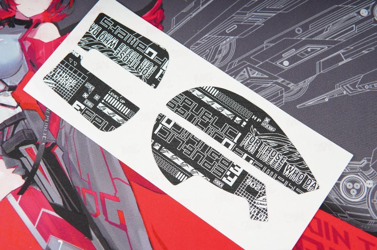 打开附件包后即可看到其中包含的一副可替换的100%PTFE特俗龙大脚贴、一副原厂的防滑贴。
