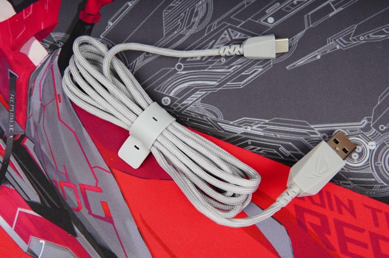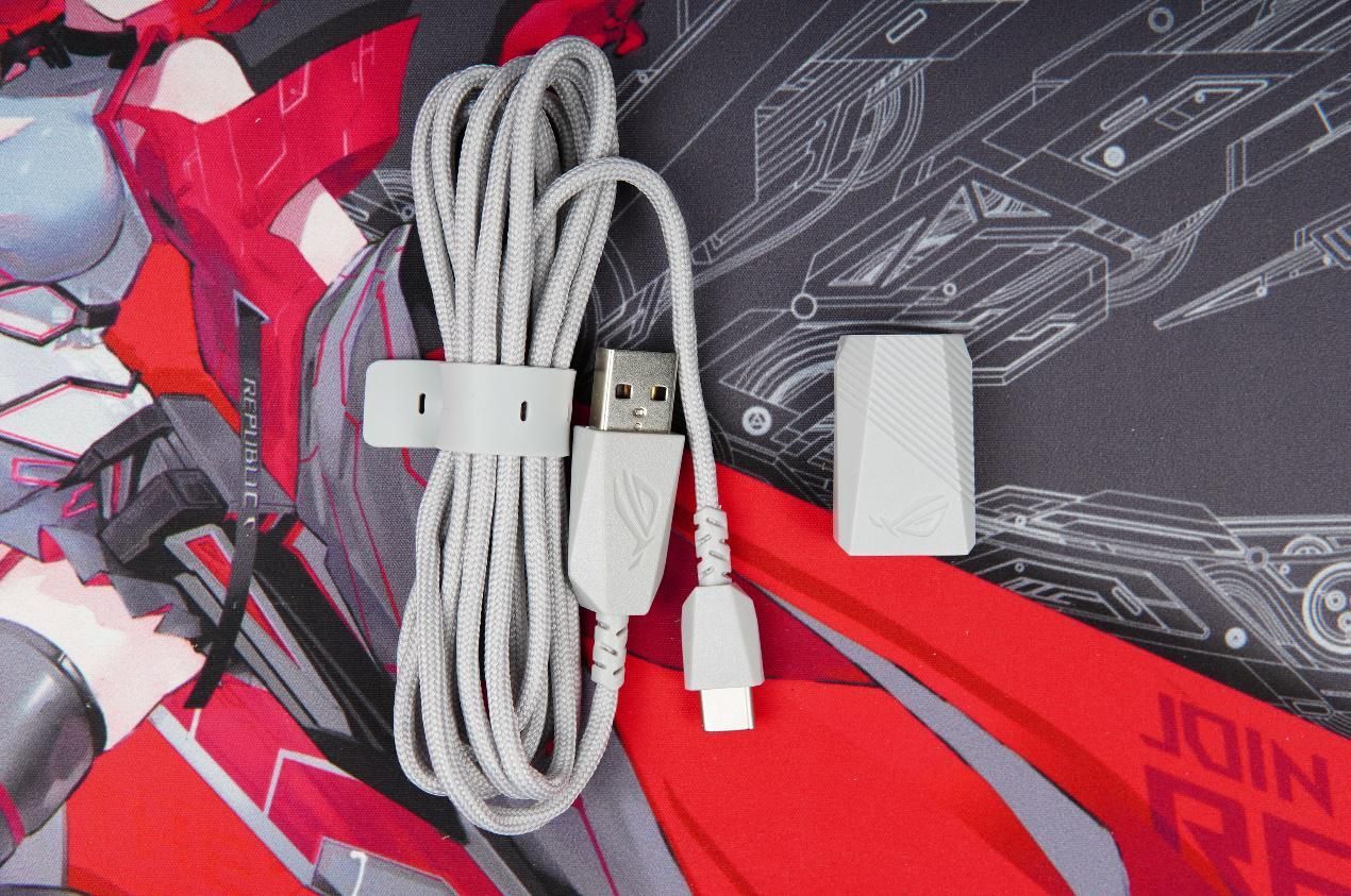 虽然龙鳞ACE是一款无线鼠标,但是ROG还是为其标配了一条Type-C的扇绳,其柔软程度在图上也可以感知得到,除此之外还有一个USB无线接收器延长器,让无线接收器更靠近鼠标以获得更稳定的连接。