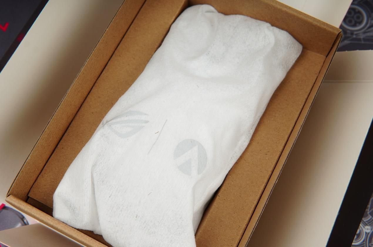 拿开感谢信后即可看到用无纺布袋包裹着的鼠标,不过我们等下再来看,先来看看包装附件。
