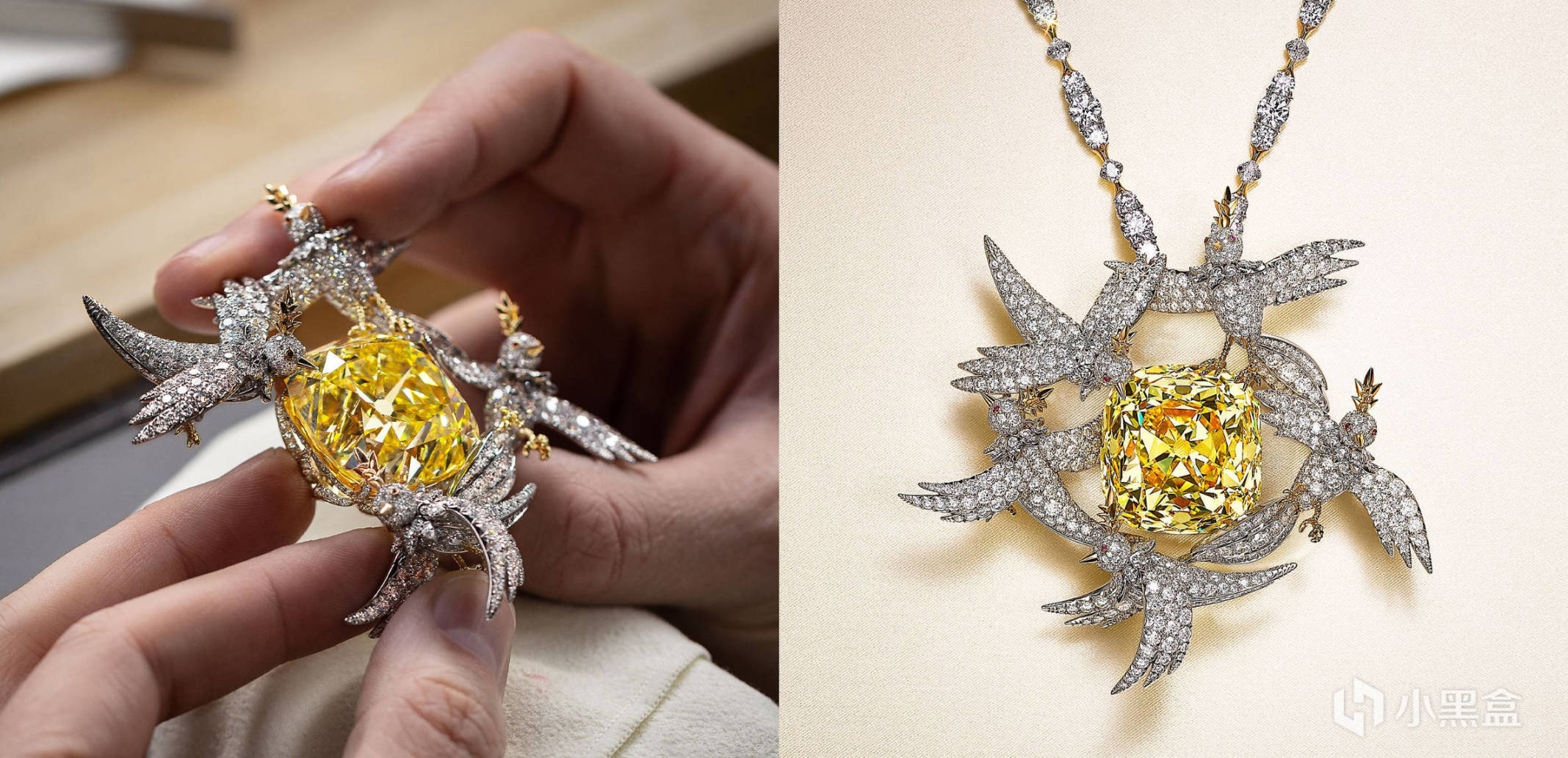 另一个是富有创意的"石上鸟"作品,彰显了钻石在艺术表现上的无限可能性。