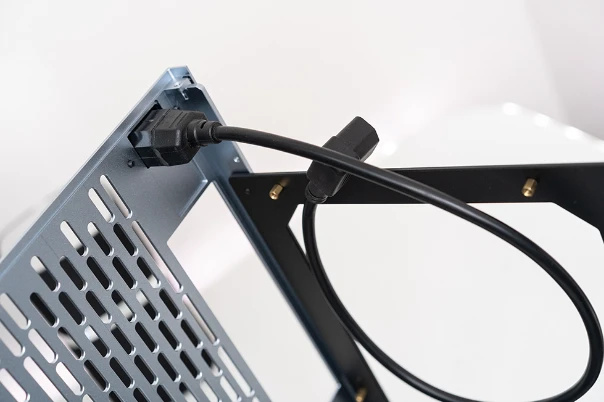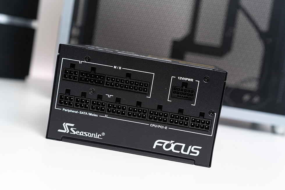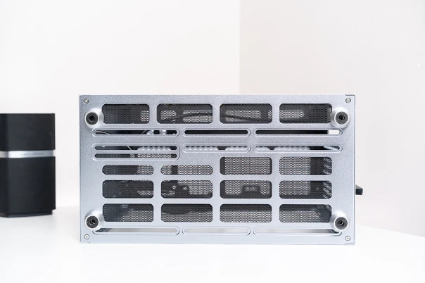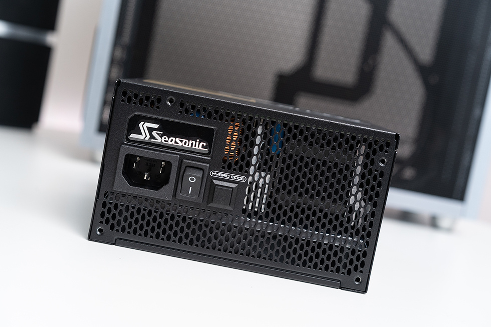 FOCUS GX-1000 (ATX3.0) 电源尾部大面积散热设计,除了电源插孔外配备了独立的电源IO开关和0噪音只能温控开关。