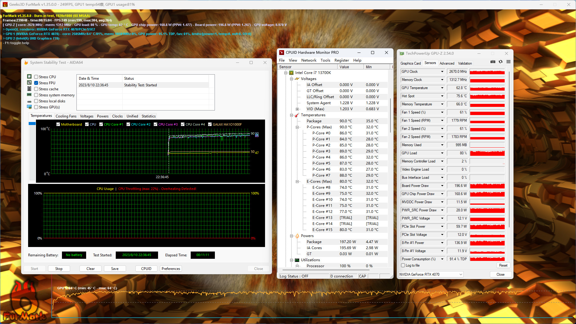 首先看一下双烤的温度,CPU最高温度90℃,显卡温度62.8℃。