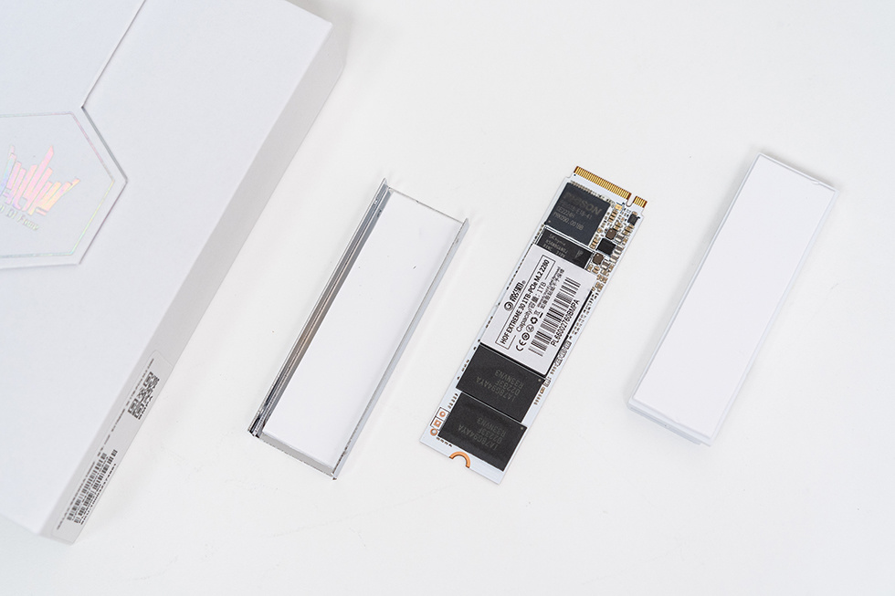 影驰名人堂HOF EXTREME 30 PCle 4.0 1TB的散热马甲和主体均为白色,其中散热马甲采用曲镜白泳CNC切割工艺,中央带有曲线设计,马甲曲线灵动感十足相较上一代马甲,散热效能优化25%。
