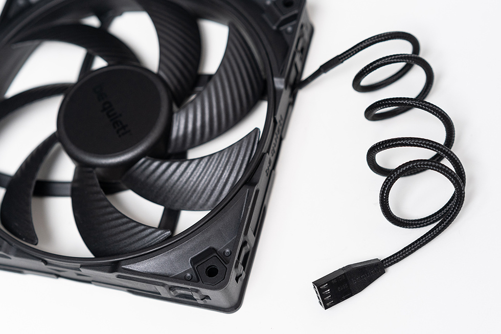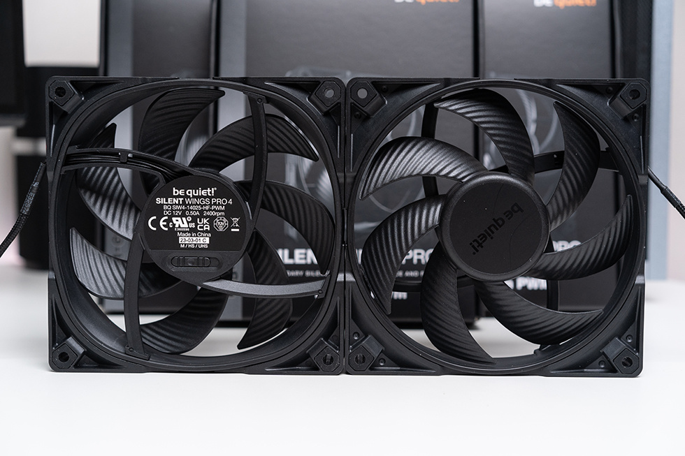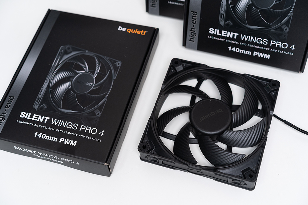Silent Wings Pro 4 采用FDB液态轴承,使用寿命高达30000小时,搭配 6 极风扇马达,三项交流变频器,仅需非常低的电源功耗,运转震动小。最大噪音值仅有 36,8dB(A),中速模式下的风扇基本上静默运行。