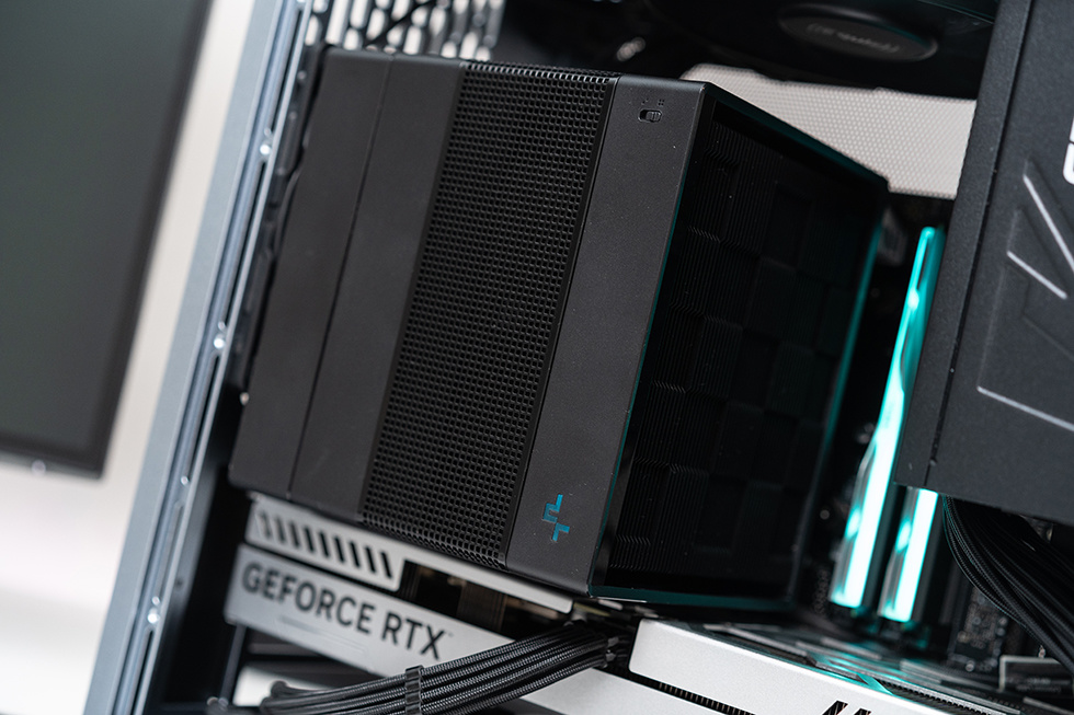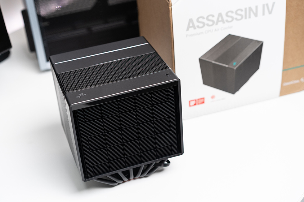 散热方面选择了九州风神阿萨辛4,最吸引我的就是其独特的外观设计,毕竟是2023红点奖与IF奖双料得主,全黑化的正方体造型,辨识度极高。整体尺寸为144 x 147 x 164mm,体积约为3.47升,模组重量较上一代轻了18%,创新双模式散热,解热功耗可达280W。