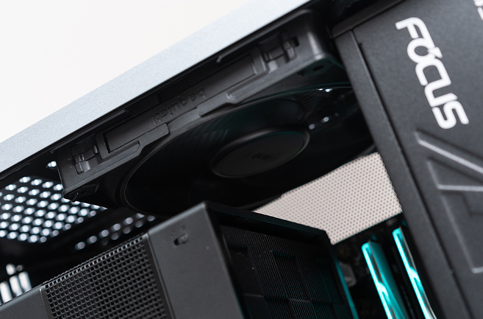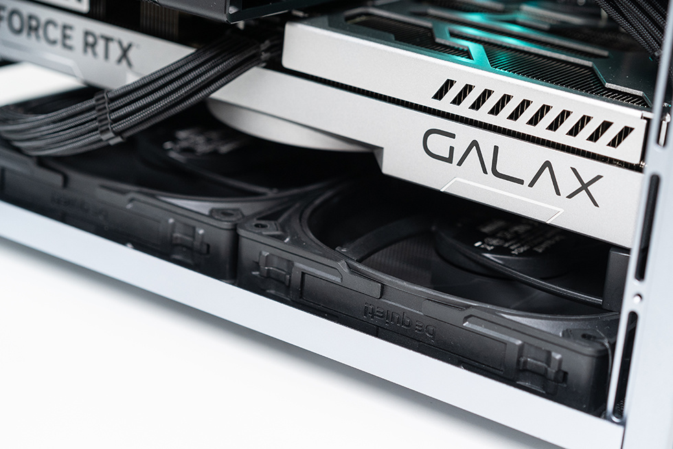 内部散热风扇上选择了德商德境界 SLIENT WINGS 4 PRO PWM 系列,分别在顶部和底部安装了140mm规格,在尾部安装了 120mm规格,整体的散热和静音表现相当出色。