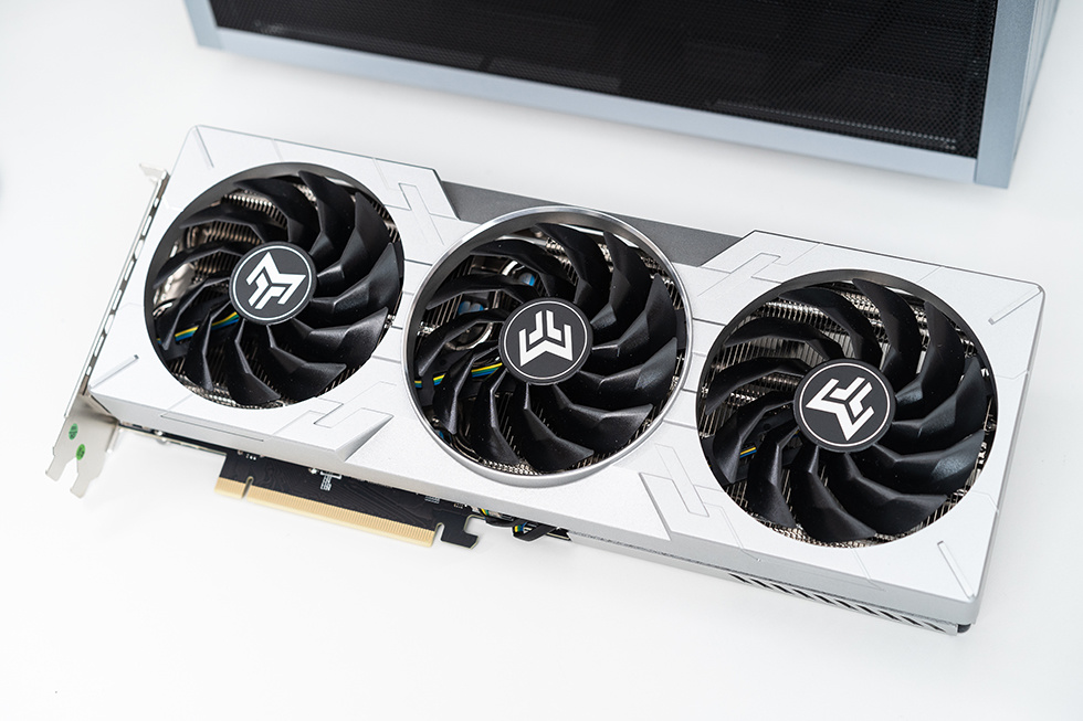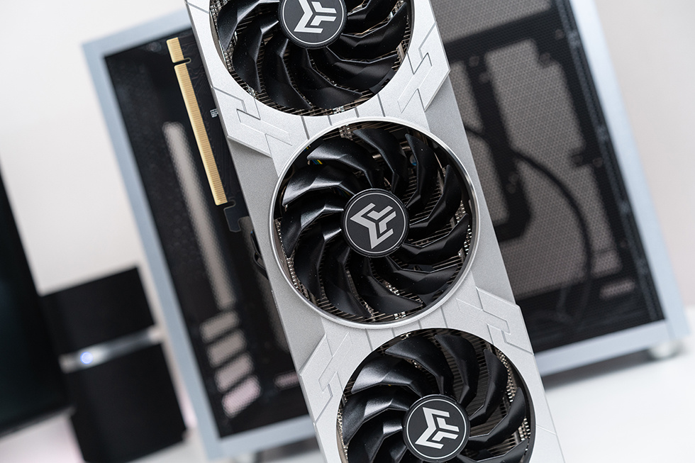 影驰RTX 4070金属大师显卡采用新一代寒光星散热系统,配置了3个规格为92mm超大静霜风扇,每个风扇带有11片三折式扇叶,均支持智能启停,GPU空闲时自动停转以减少噪音和功耗。GPU/显存/供电一体式覆盖均热板+镀镍复合热管+大面积散热鳍片,配置4*Φ6mm镀镍复合热管,依托回流焊接工艺大幅提升散热效率。
