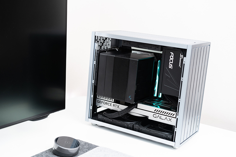 影驰 RTX 4070 金属大师 OC 的出色游戏性能就不用多赘述了,双槽厚度在这种小箱子里的兼容性优势体现的淋漓尽致,加之金属的外观质感,和整机的调性十分搭配。