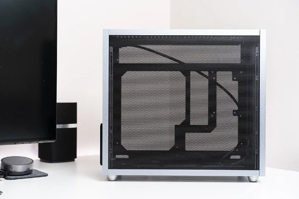 AKLLA A6M默认的侧板为黑色Mesh面板,也提供了钢化玻璃侧板以便替换,不过个人还是比较喜欢无光非侧透,黑色的mesh面板更加耐看。