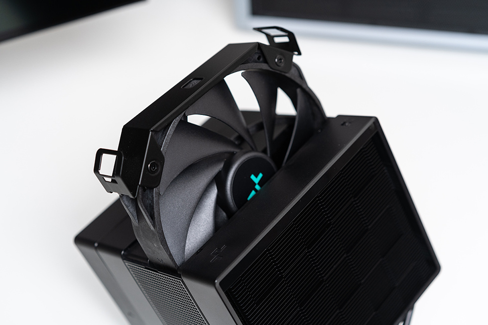 阿萨辛4在兼容性上花了很大功夫,首先将朝向内存的散热风扇移到了另外一侧,解决常规双塔散热器挡内存的问题。其次阿萨辛4背面的风扇采用了两段式卡扣设计,通过上下两档高度的固定位置调节,最大限度避让主板的散热装甲。