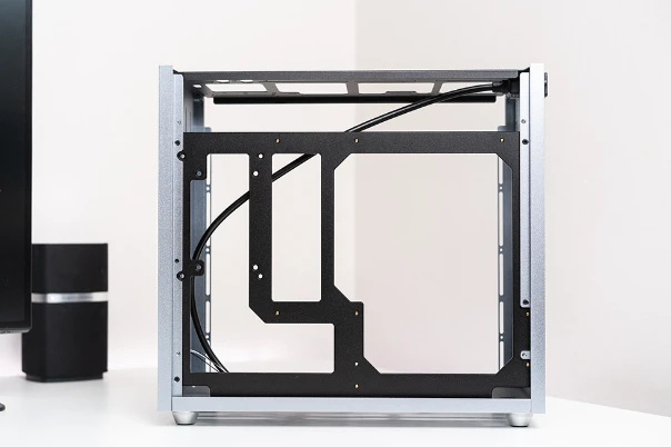 AKLLA A6M为单仓设计,内部结构相对简单,内部有一块主板及电源复合安装底板,支持 M-ATX\ Mini ITX 主板安装,塔式风冷支持限高163mm,支持显卡长度最大 345mm,高度 158mm,厚度4槽位的显卡。