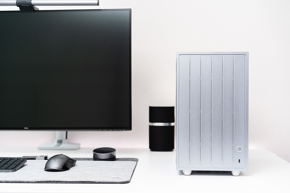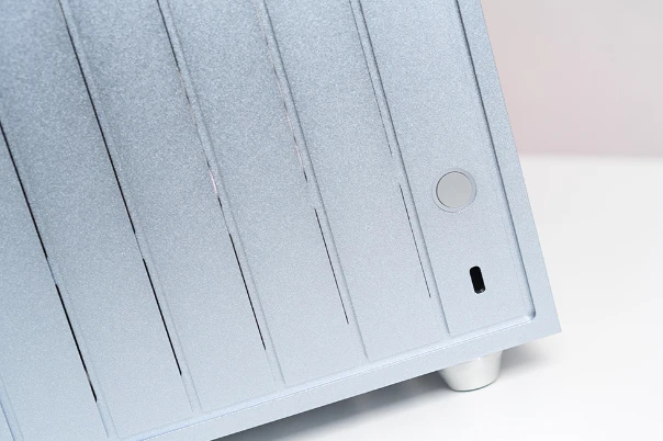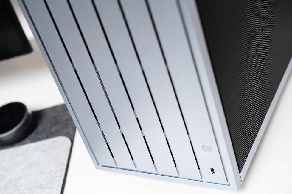 机箱的I/O部分相对简单,只有一个带发光环的开关按键和一个全速 USB 3.1 Gen2 Type-C 接口,虽然接口少了但是进一步保证了整体的美观度,对于外个人来说还是喜欢此类的减法设计的。