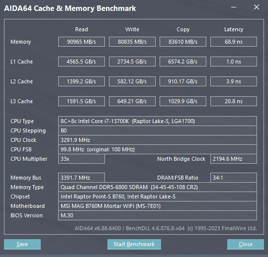 内存选用了芝奇 Trident Z5 RGB DDR5-6800 16G*2,无论是性能还是外观都是非常不错的选择。