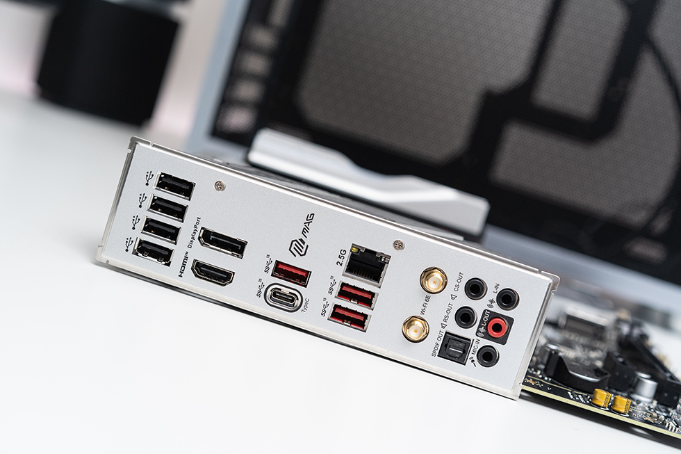 微星 MAG B760M MORTAR WIFI主板采用一体背板。IO接口方面,主板提供 4 个USB 2.0 接口、3 个 USB 3.2 Gen 2 10Gbps 接口和1 个 USB 3.2 Gen 2x2 20Gbps Type-C 接口。 1 组 HDMI 2.0 和 1 组 DisplayPort 1.4 接口,两者都支持最高 4096x2160@60Hz 分辨率,并支持 HDCP 2.3、HDR 及 4K Ultra HD 播放,板载 2.5G高速网口与 AX200 WiFi6 无线网卡,板载声卡支持 7.1 声道输出。