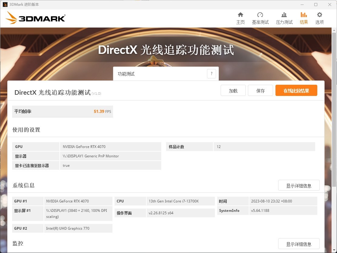 3DMARK显卡测试,主要对4K分辨率下D12和光追性能进行测试