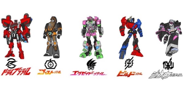 最后一组比较好认的假面骑士是时王、战兔、Ex-Aid等,大家能认出它们对应的变形金刚原型都是什么吗?
