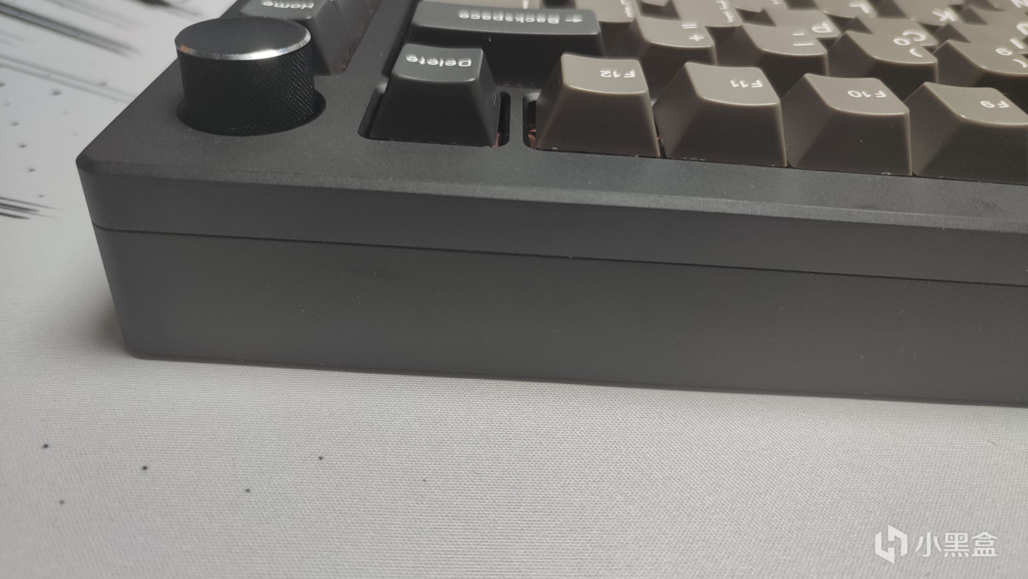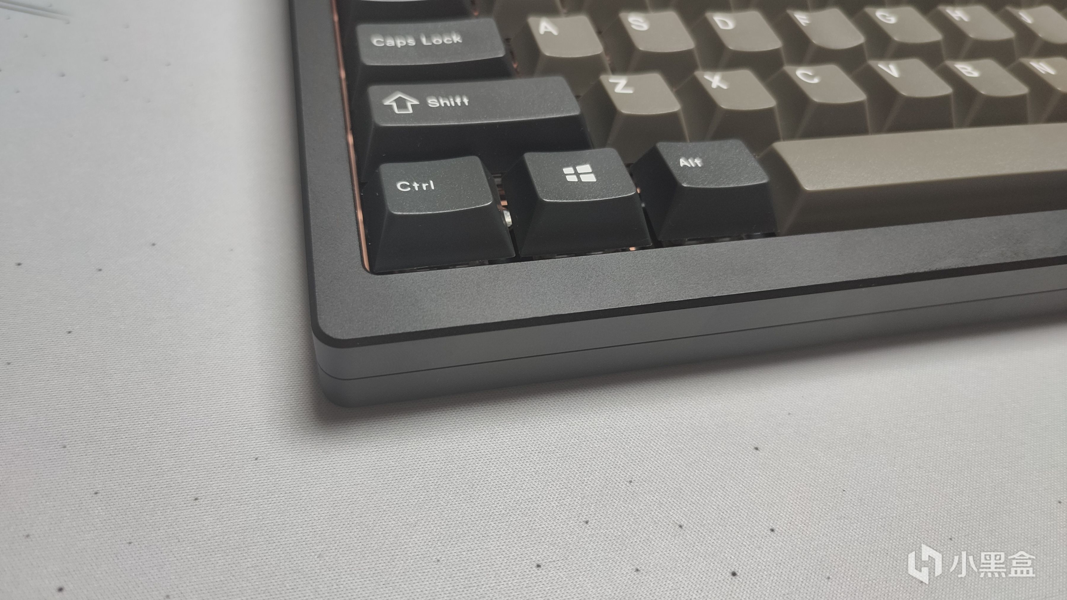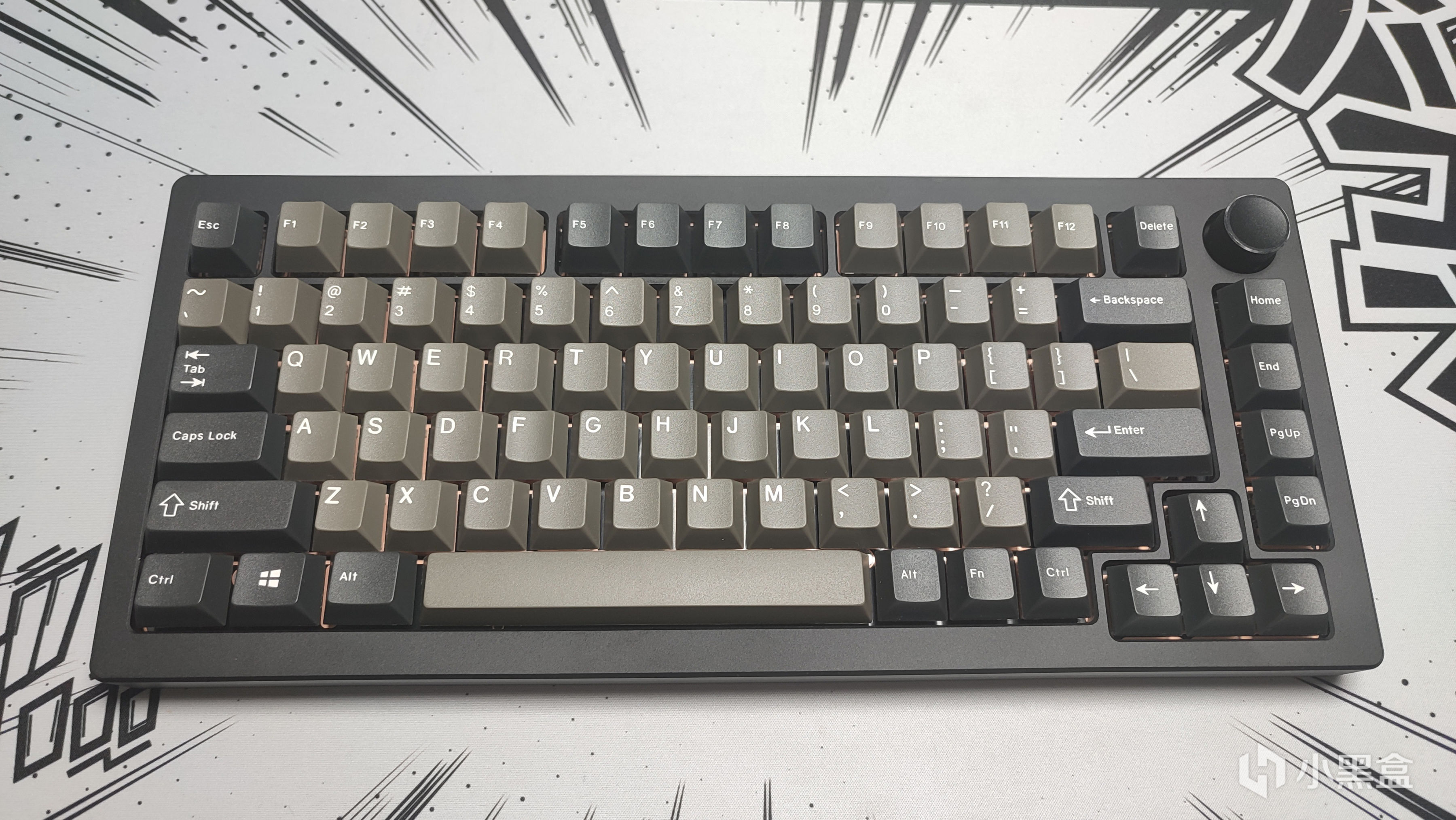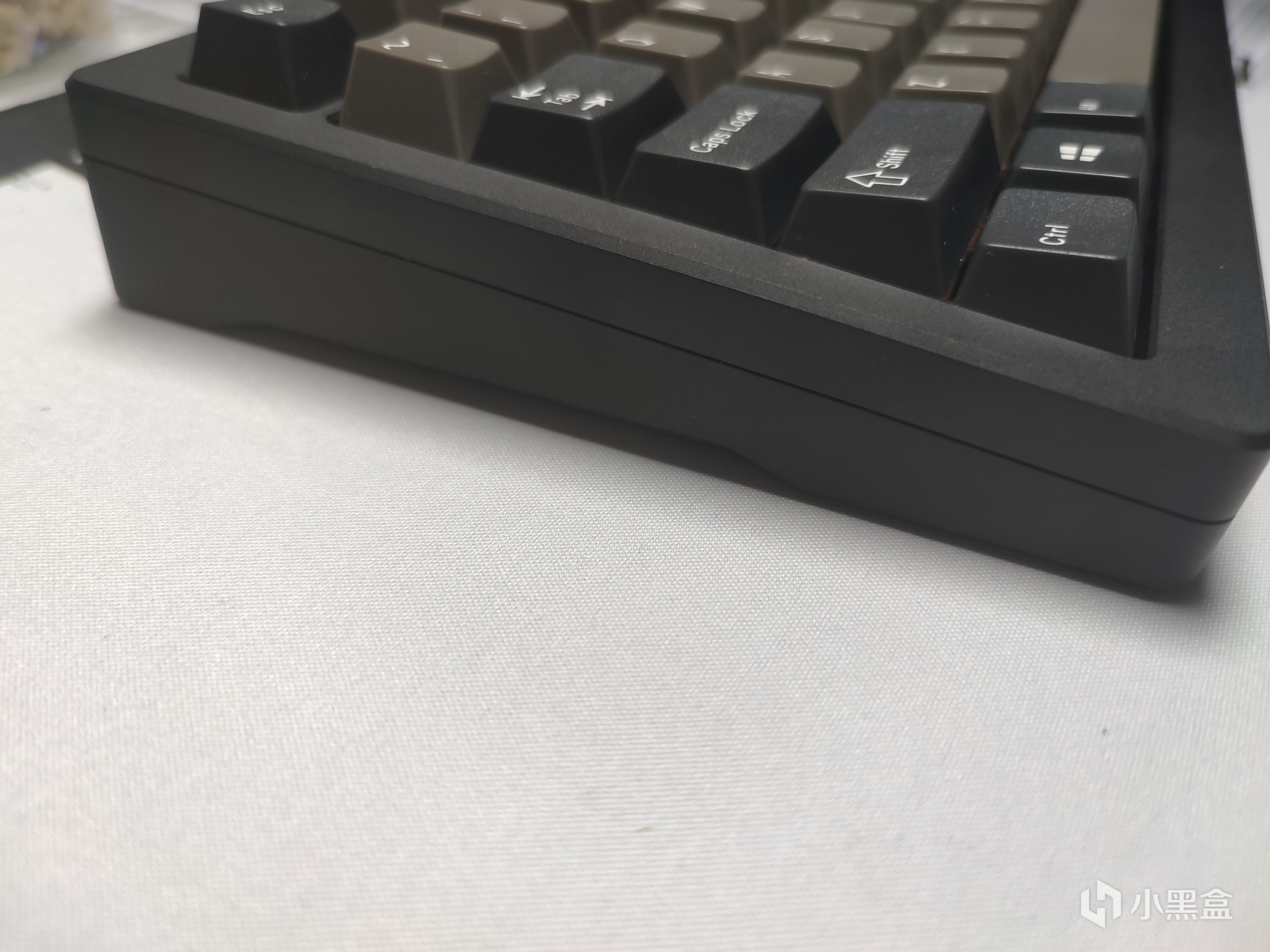 從名字也可以看出來鍵盤採用的是75%配列,也是當下機械鍵盤比較流行並且實用的一個配列。我手上這把是雅黑配色,整體觀感還是十分不錯的。整體採用的是陽極氧化180目,用手指甲刮一下都能看到痕跡。