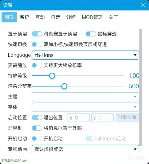 13.動畫內存優化:優化了多餘的顯示控件, 支持在設置中設置動畫渲染分辨率, 按默認500px分辨率渲染時桌寵內存佔用僅有200mb。