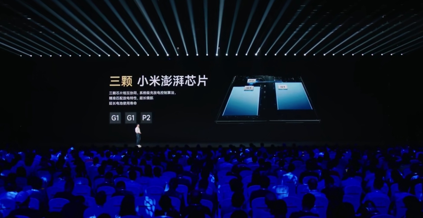 两颗澎湃G1电池管理芯片,一颗澎湃P2充电芯片