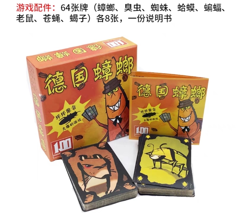 那麼這款遊戲的規則也非常簡單,總共64張牌一人一半分好,每次輪流看一下自己最上面的牌,然後告訴對方是什麼蟲子,總共有八種蟲子,當然你可以選擇撒謊,對方也可以選擇相信或者不相信。