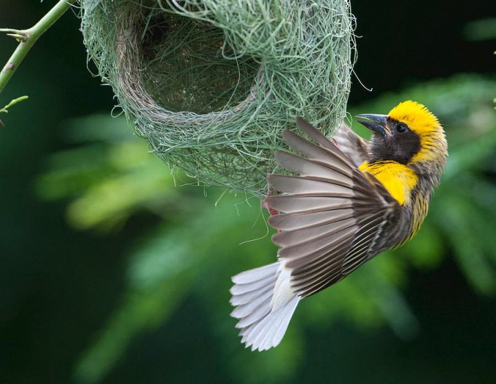 成鳥最少需要飛行500次,耗時18天,才能建成一個巢穴。這些巢通常建於(多刺樹或棕櫚葉上)靠近水的地方或懸在捕食者無法輕易到達的水面附近。