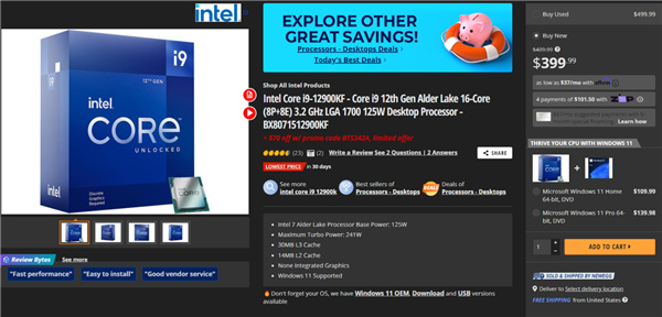 沒想到,12代酷睿大降價了,幅度相當不可思議,不過至少目前僅限美國市場,新蛋、亞馬遜、MicroCenter等大型零售商集體行動。