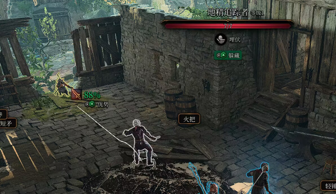 或许是设计师早就想到了从另一条路线进入村落的可能性,在村落的北门,「正好」有一只打盹的地精,于是我以这个方向为突破口悄悄地把原本打算埋伏我的地精一个个偷袭消灭掉了。