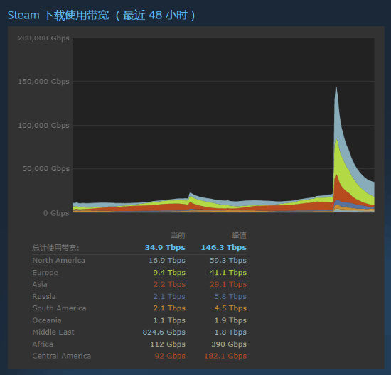 由于《博德之门3》正式版的上线属于更新性质,Steam无法提供预载功能,所以平均下载速度达不到22.7MB/s的玩家(比如我)都得8月4日才能打开游戏。而Steam也顶住了这波流量尖峰,没有辜负自己「给用户提供蒸汽机般强劲可靠的下载速度」之名。