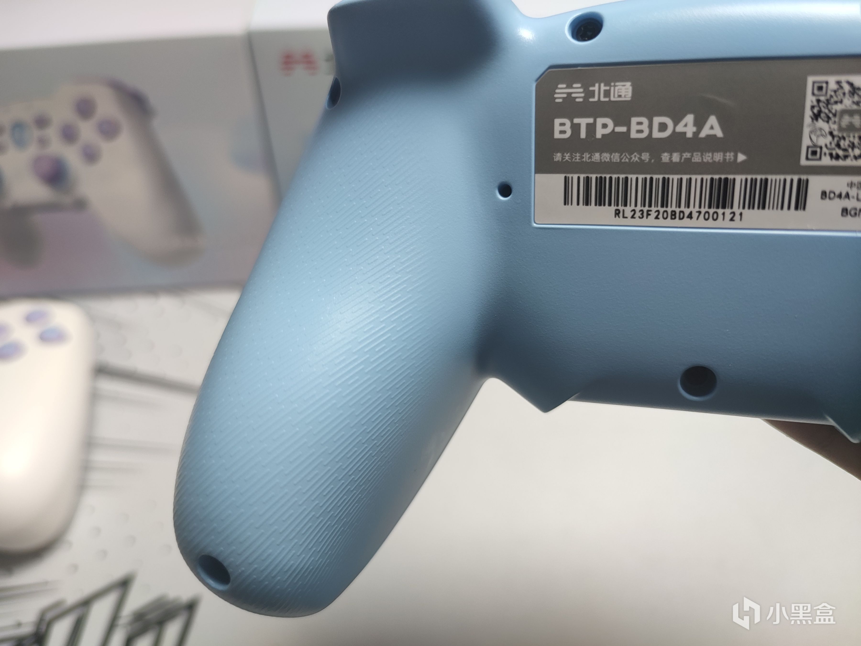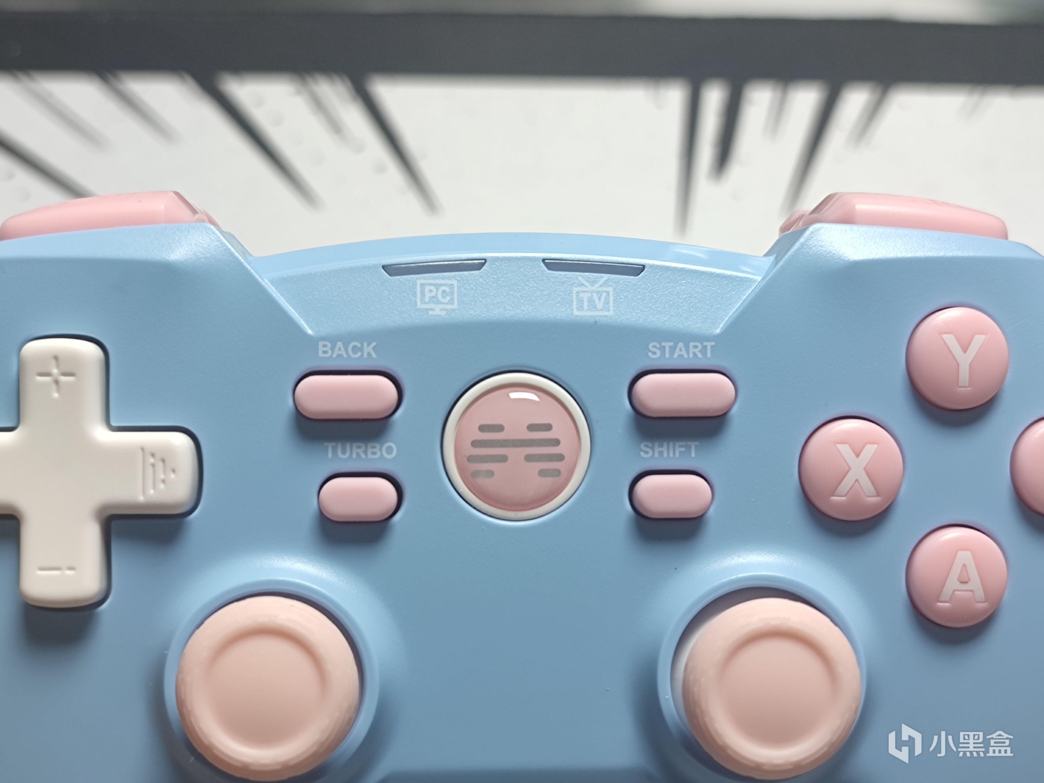 中間則是北通LOGO鍵,和XBOX的西瓜鍵一樣開機需要用到,表面材質採用的不清楚是PC還是什麼,手感很光滑。