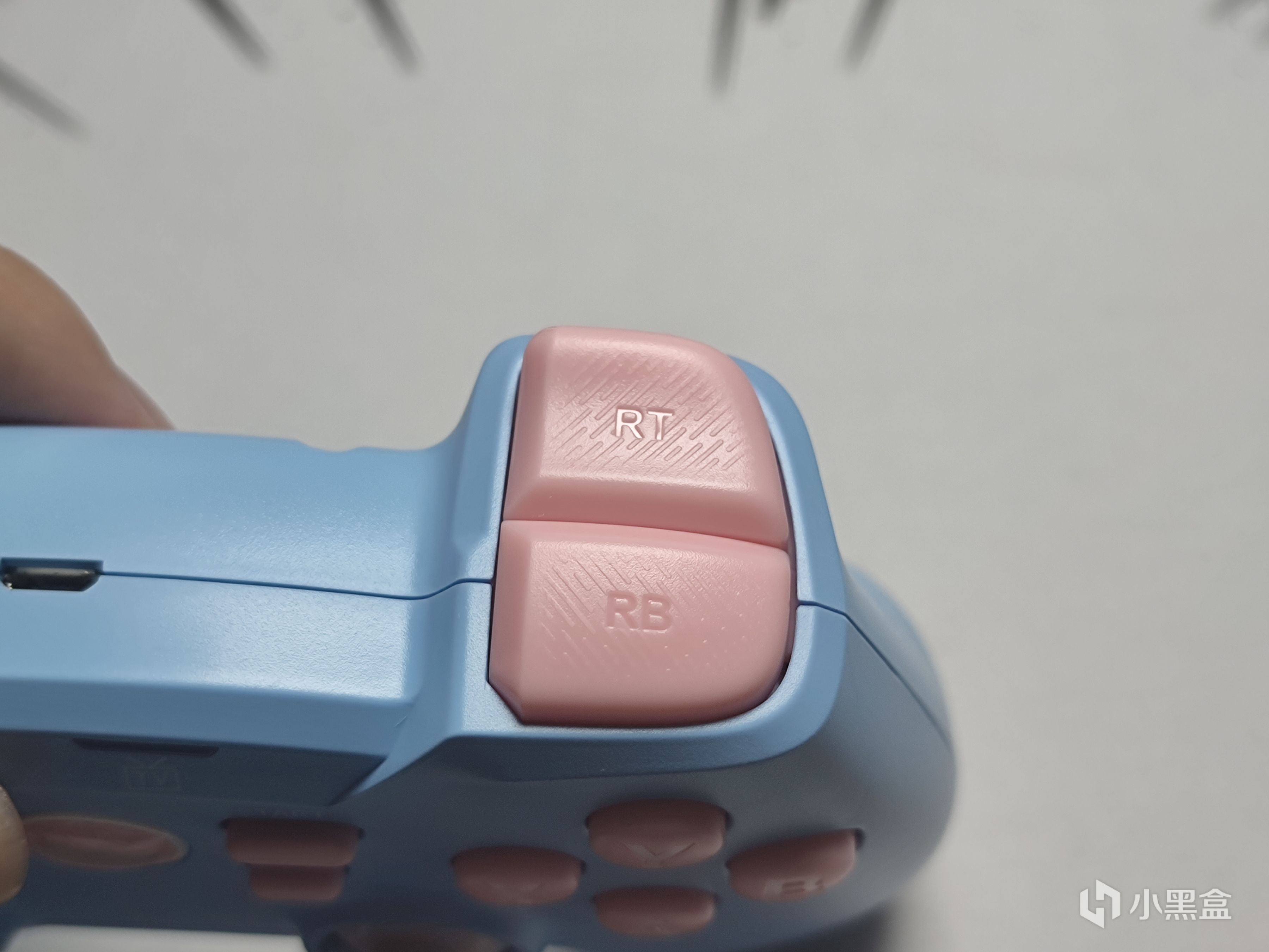 扳機以及肩鍵處能看到大量防滑紋設計,這種防滑紋同樣也可以在握持處看到,不過僅在背面有,正面或是考慮到顏值沒有添加防滑紋。