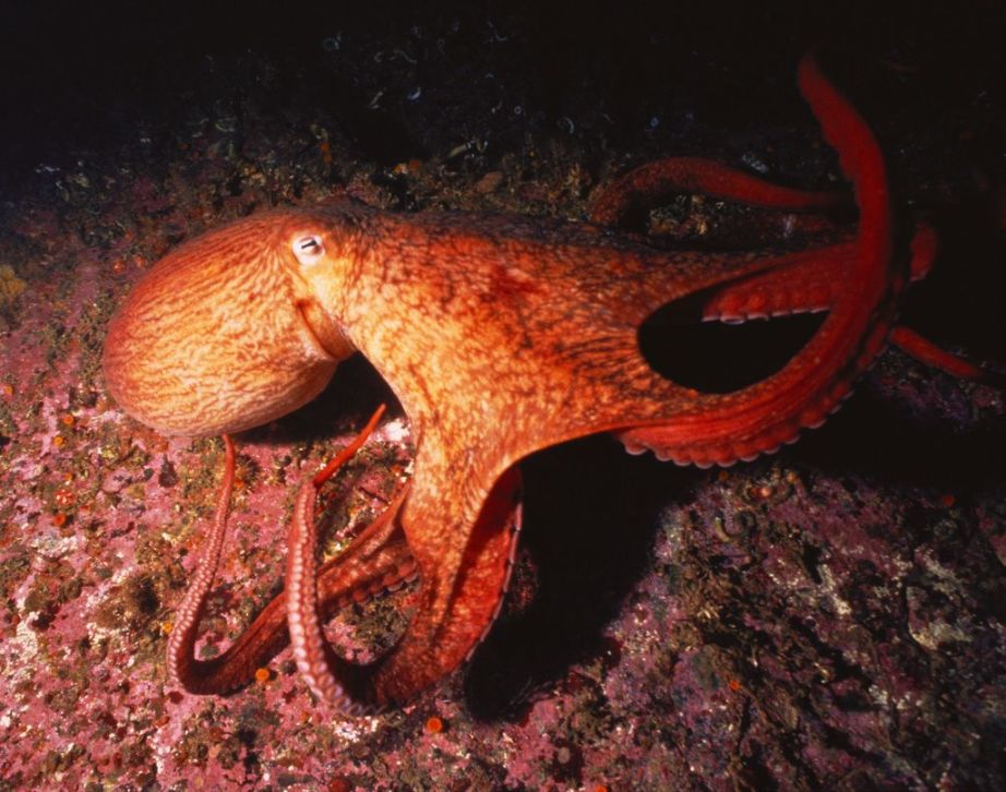 千萬年過去了,章魚的進化方向也不盡相同。有的章魚能夠分泌出一種足以把人殺死的超強毒素,有的章魚(如深海章魚)的吸盤則變成了發光器官以吸引獵物……但所有章魚都具有“概念思維”(這一名稱是專家們經過多年觀察後認可的)。
