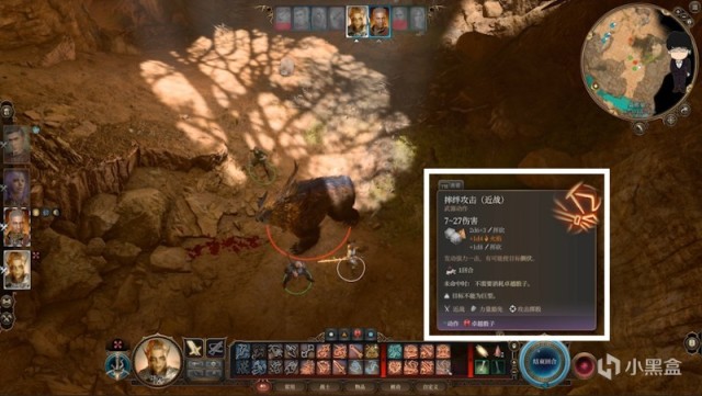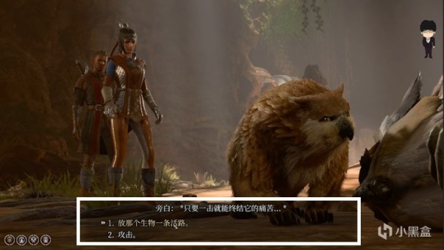 进入战斗,老基德建议等他们开打第一回合后再上前,这边演示有点着急,不过豁免成功了。战斗开始后我们只要攻击枭熊妈妈即可,小枭熊还有后续剧情,建议全程保护