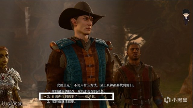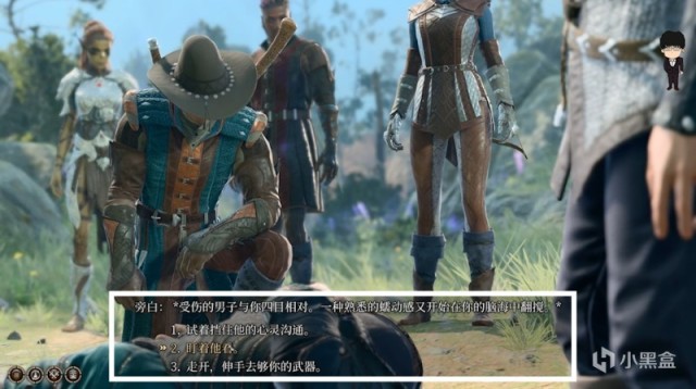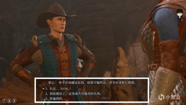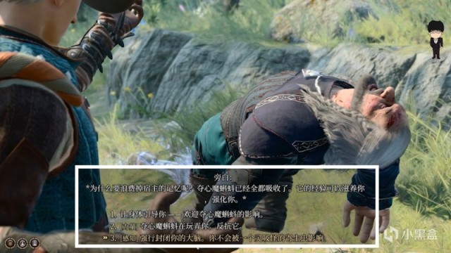 等他俩走后上前舔包,这里会触发第一次夺心魔蝌蚪的相关选择,想要正义之路推荐选择反抗选项,根据当前角色选择对应适合属性即可