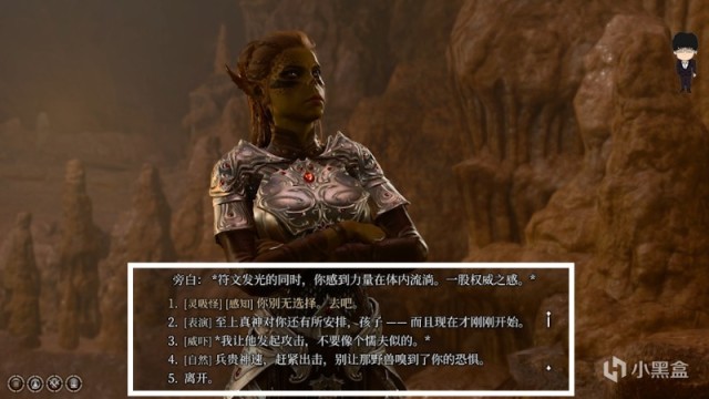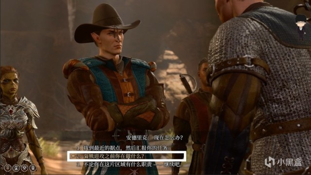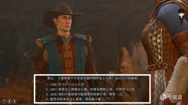 接着洋基妹与NPC对话,这里记得少用灵吸怪技能,这会加速成为夺心魔的进度。选项234看个人情况选择,只要劝他上去作战即可