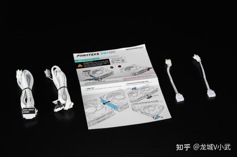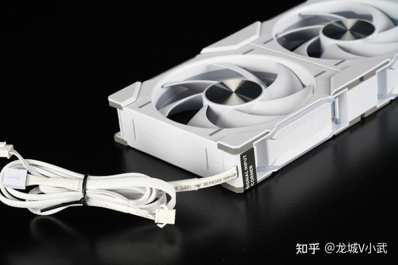 每一組風扇僅需要一根線材即可。線材同樣的卡扣設計。需要注意安裝位置,按照貼紙提示的方向來安裝。