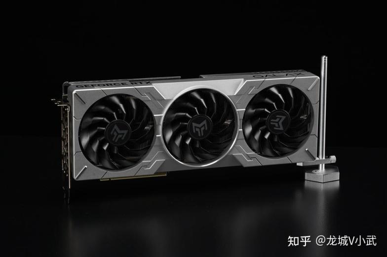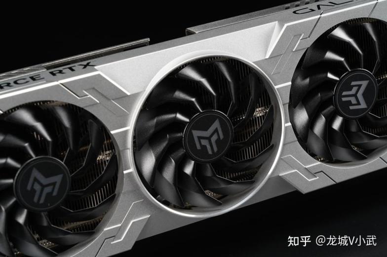 影馳GeForce RTX 4070金屬大師擁有3個寬度92mm超大靜霜風扇,每個風扇帶有11片三折式扇葉,風流強勁。 三風扇均支持智能啓停,GPU空閒時自動停轉以減少噪音和功耗。