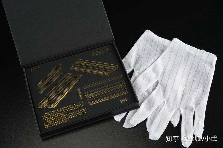打開包裝內部還附帶了一雙白色的防靜電手套,在裝機過程中避免靜電對心愛的電腦硬件造成不必要的傷害,黑底燙金的內存介紹卡充滿高級感。